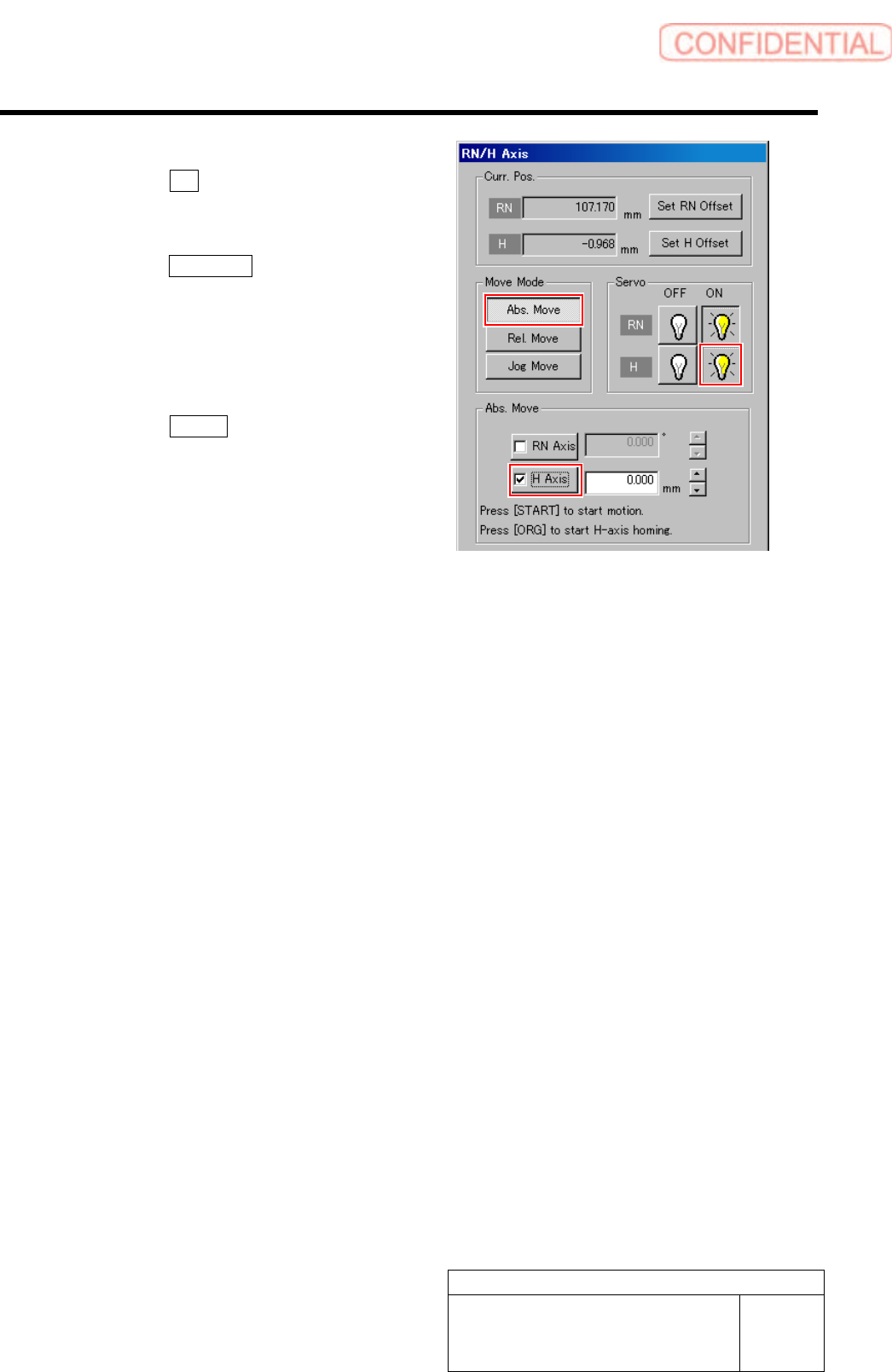 Servo for H axis is turned on.