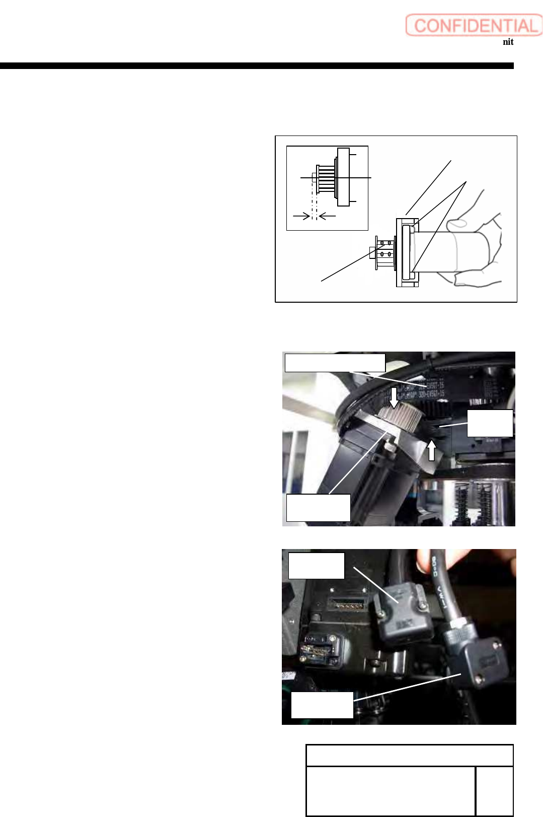Ch ange Procedu re fo r RT-axis Moto r Unit 11 Mov e the brac ket t o the position in whic h the tensio n of R T -axis timing bel t gains by adjustme nt scre w . Measure the tensio n with T e nsion Mete r, and loc k the …