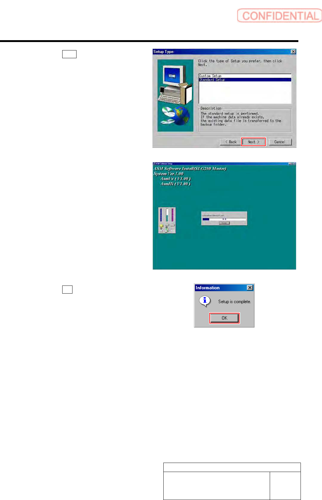 Work Procedure WKGB-10101-01 Installin g System Sof tware SHEET 5/8 7. Click the Next button on the Setup T y pe screen. Installation of th e system softwar e is started. When installation is ende d, Information dialog b…
