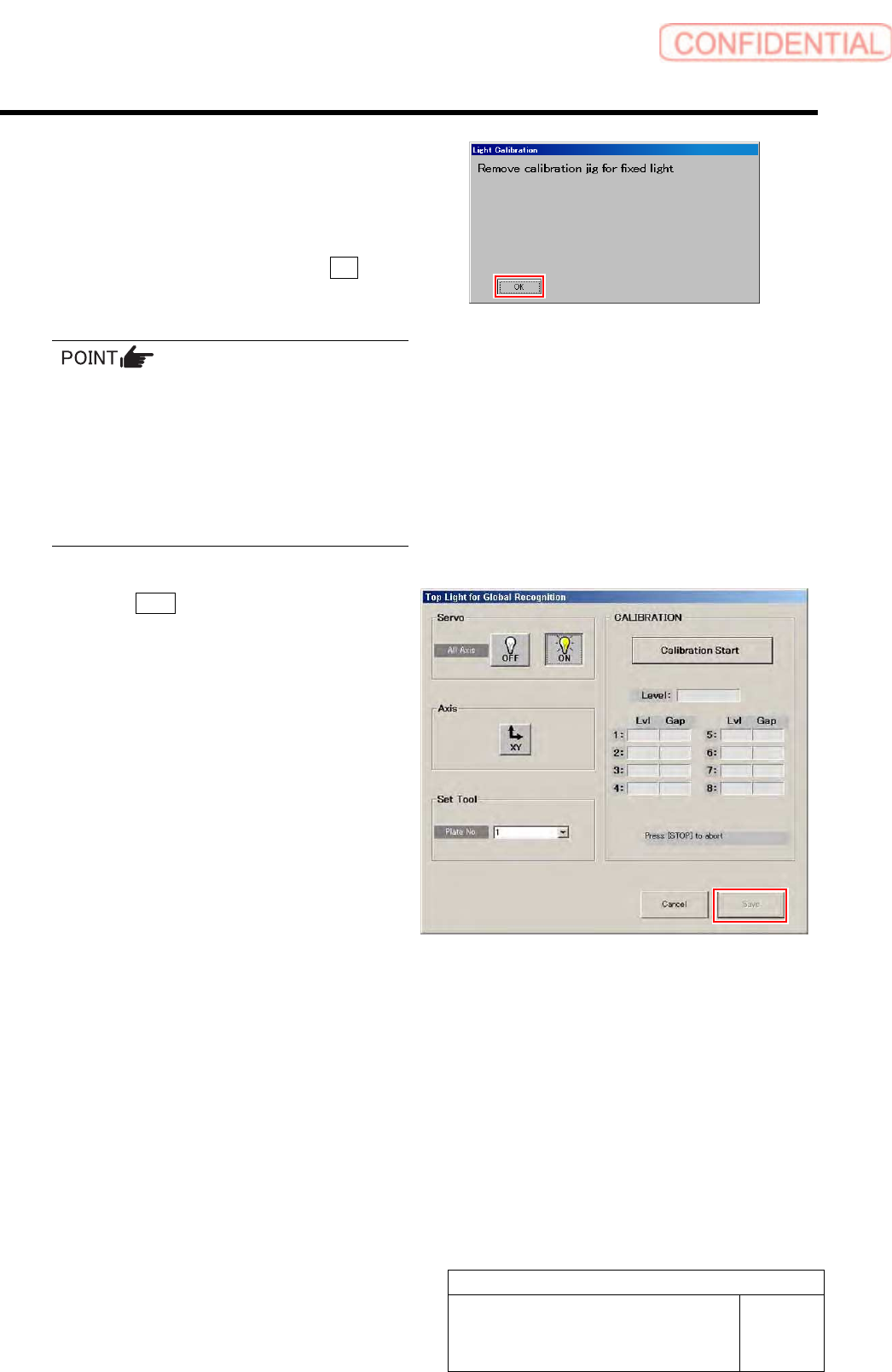 Calibration HLGB-10303-01 Light calibration f or Global Recognition SHEET 2/3 2 Select jig No. of fixed camera light calibration jig from the list box. 3 Click the Calibration S tart button. “Install calibration jig for …