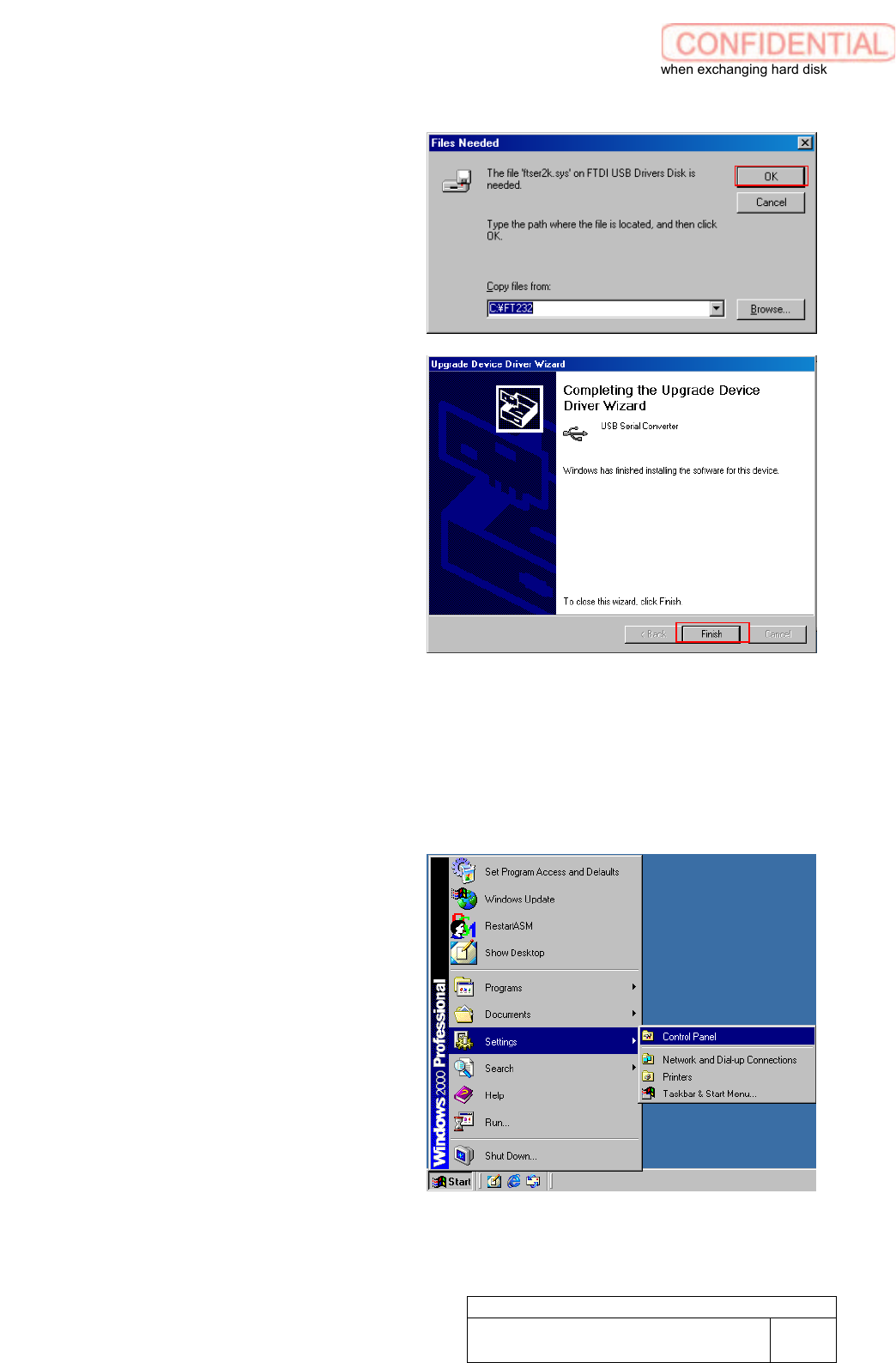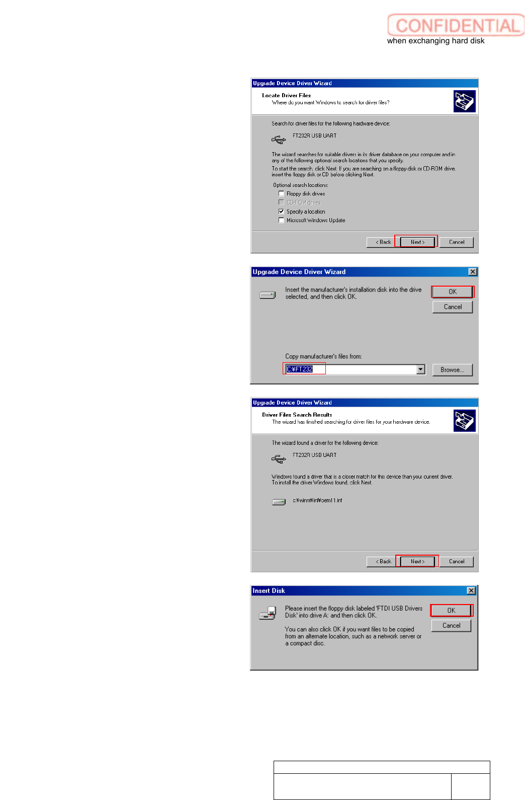 Setting UPS w h e n exchanging h a r d disk WKGB-10103-02 Setting UPS when exchanging hard disk 6/14 10. Click Next butto n. 11. Confirm if Copy ma nufaturer ’ s files from field is filled “C : \ FT232” to click OK butt …