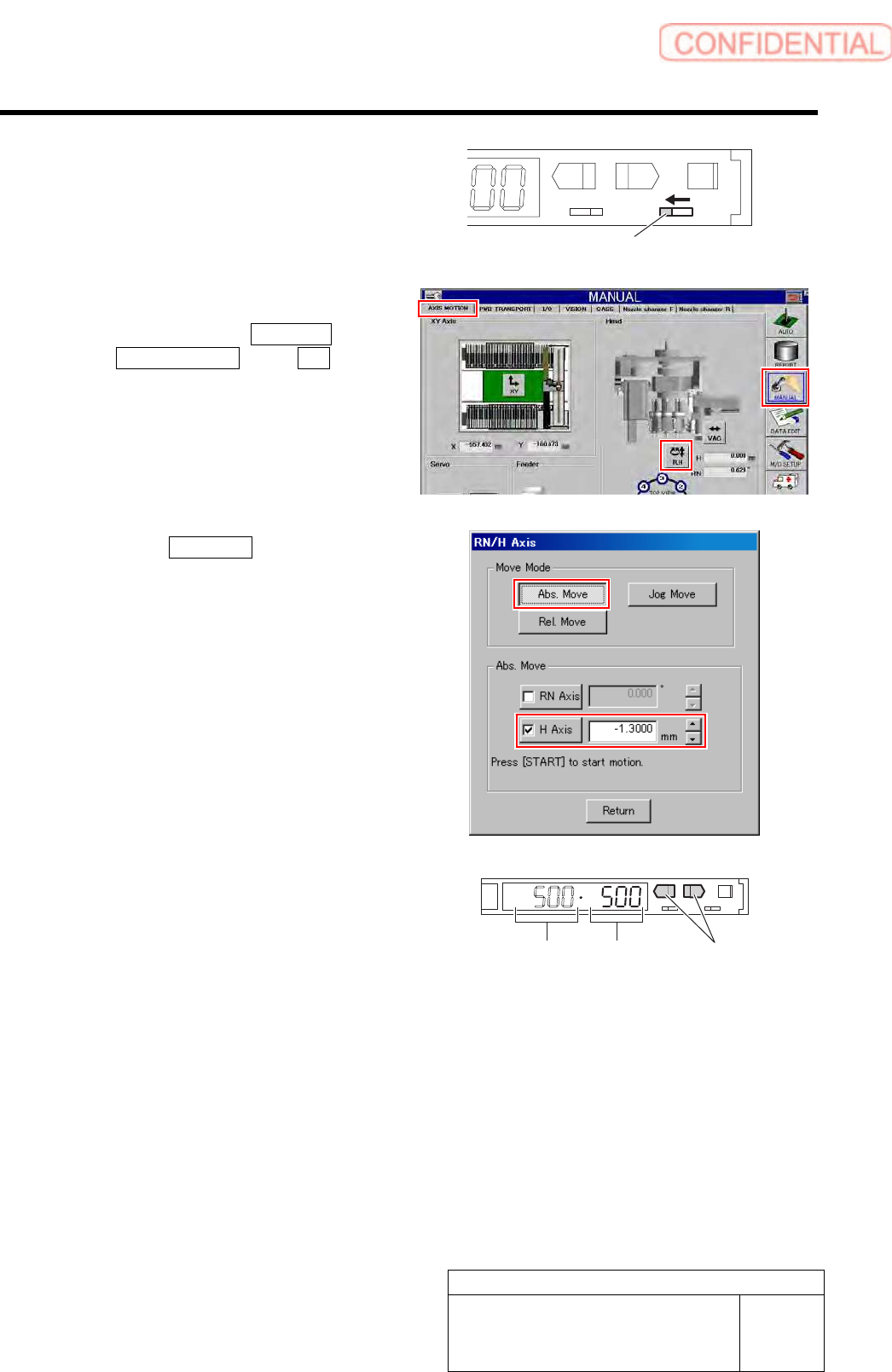 Adjustment HLGB-10413-01 Nozzle Escape Detect Sens or Position Adjus tment SHEET 4/5 6 Change over the operation mode selector switch to the “L” side to light up the lamp. L SET RUN UP DOWN MODE D 7 Set the threshold. 1.…