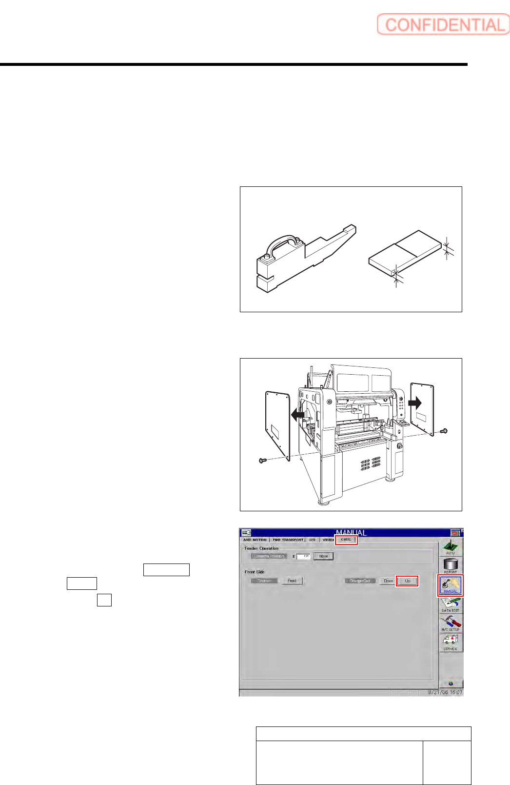 This section describes a procedure to adjust the height of the cassette float sensor by using feed
