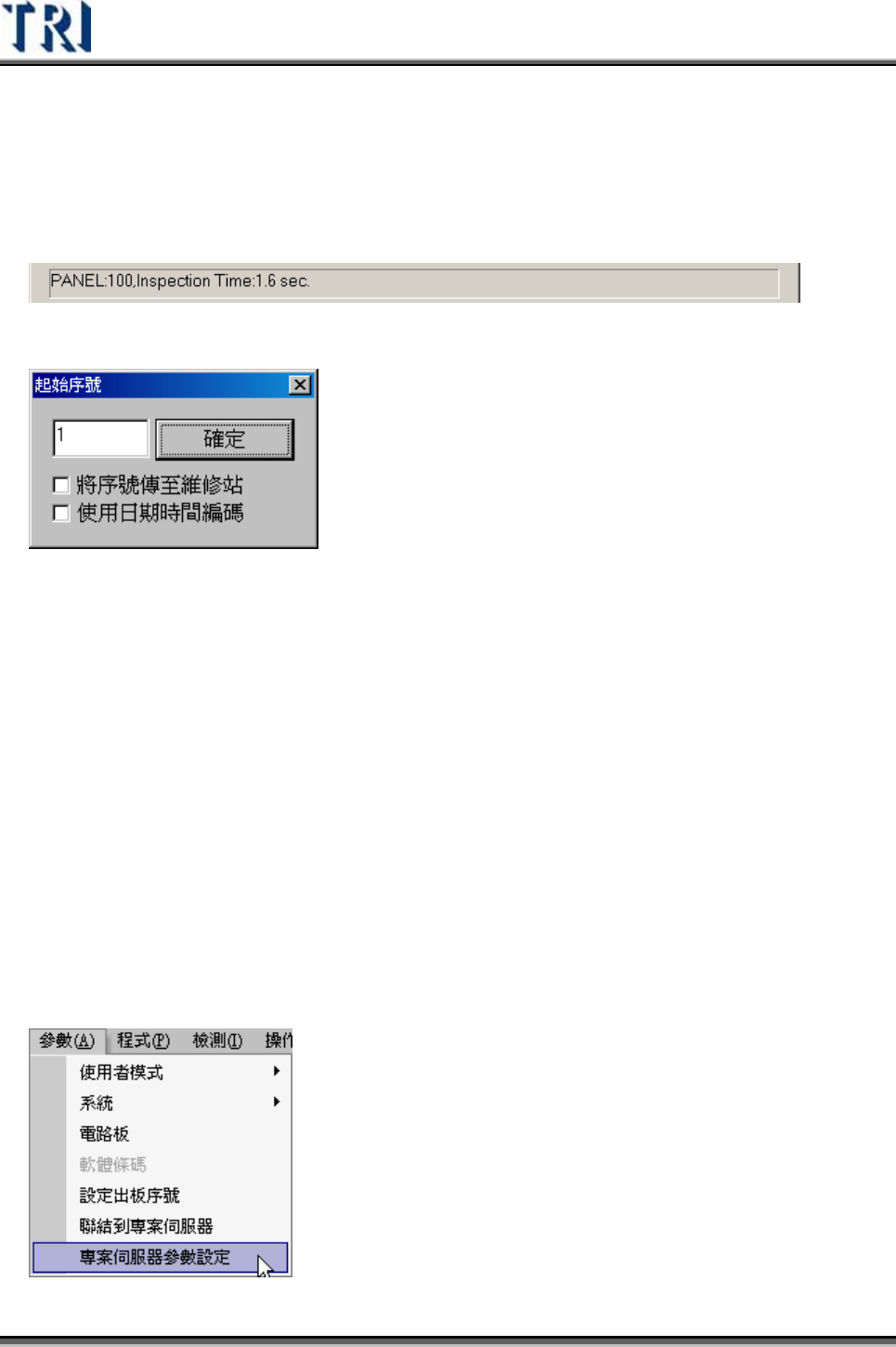 在[BarcodeSN]欄位中。此序號亦會顯示在檢測結果視窗的[PANEL]欄位上。以下