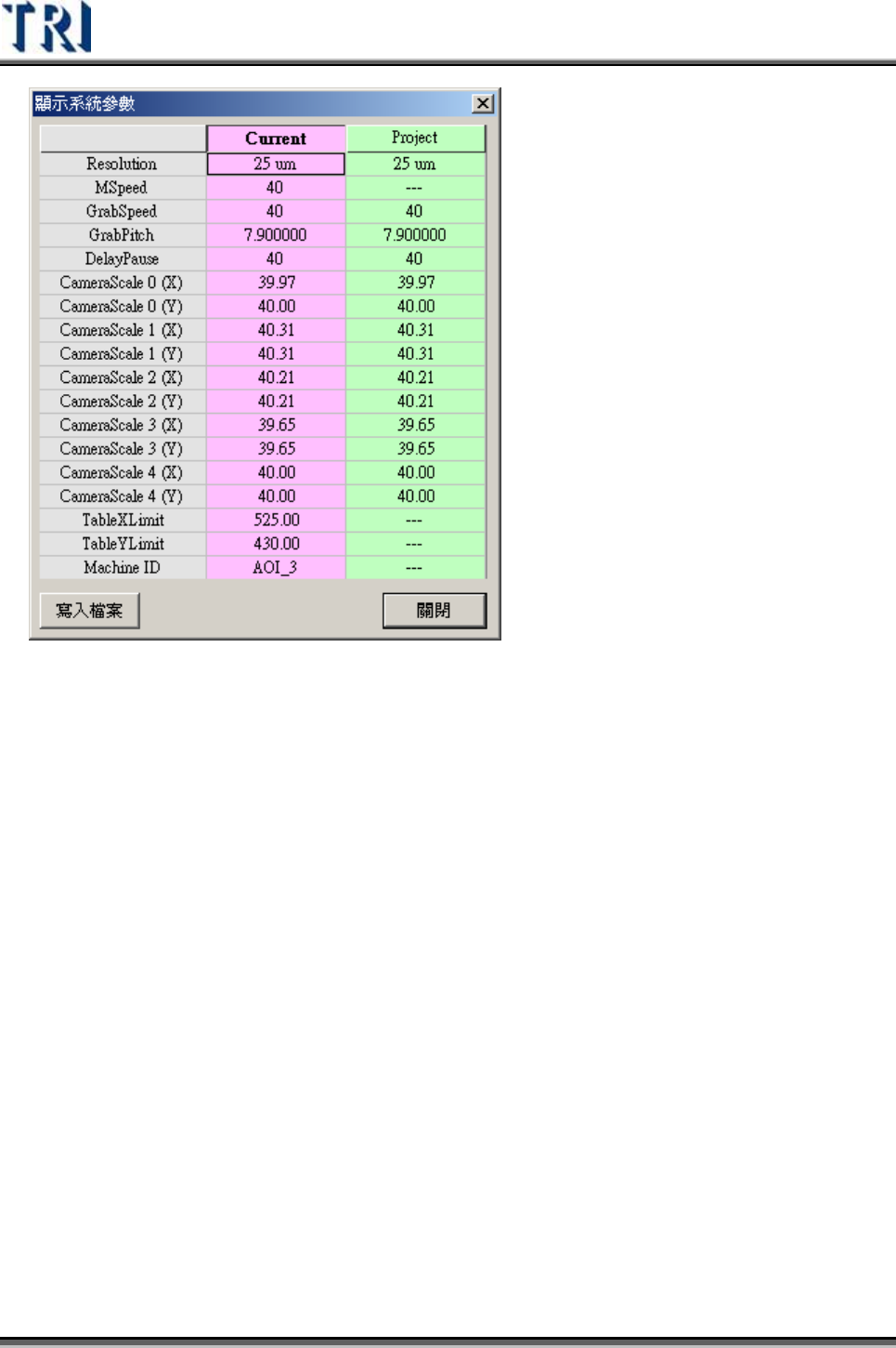 按下此按鈕可檢視系統參數以及程式儲存時的參數。按下[寫入檔案]按鈕可將參數值以