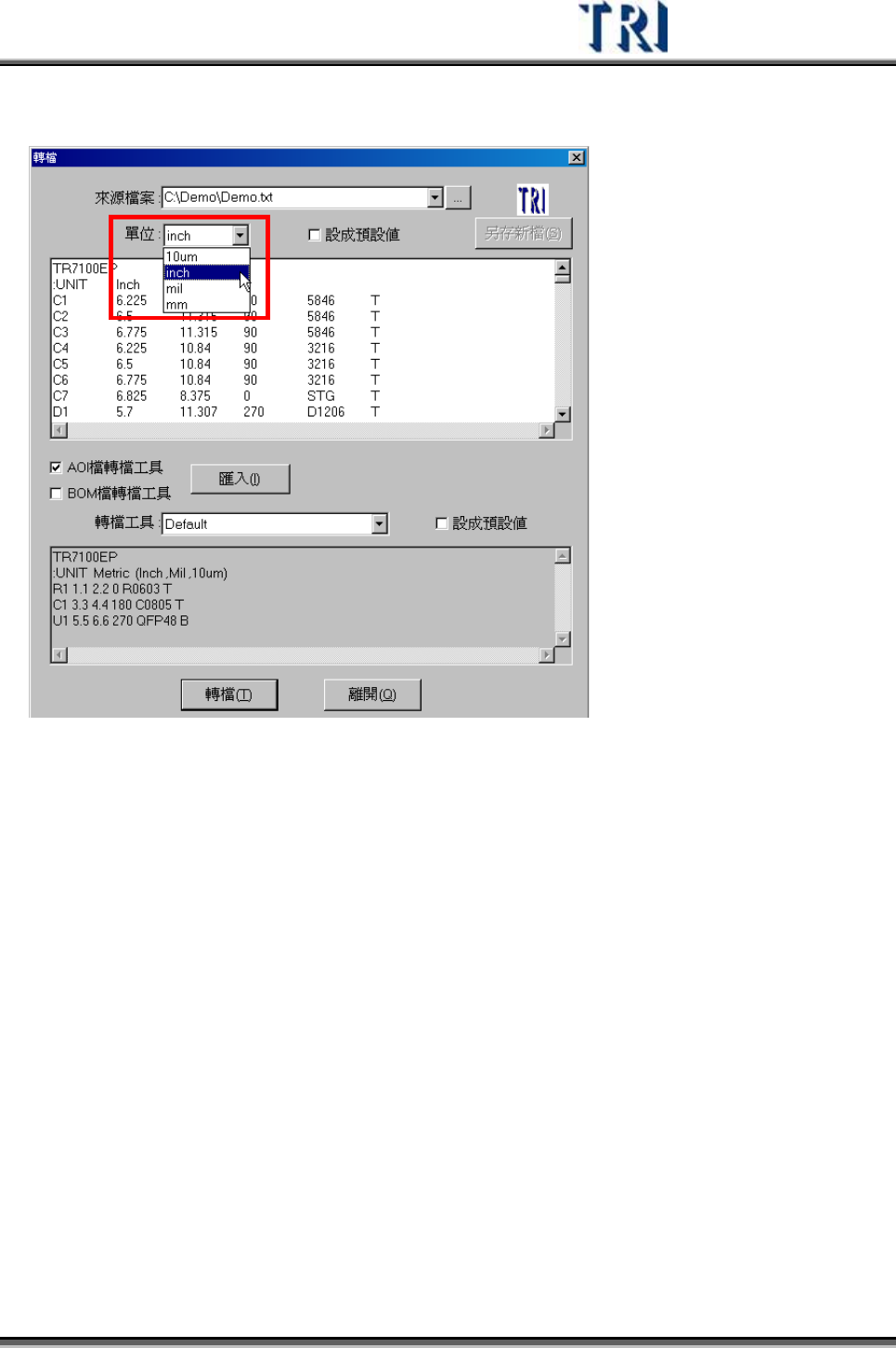 4) 選擇來源檔案所使用的單位