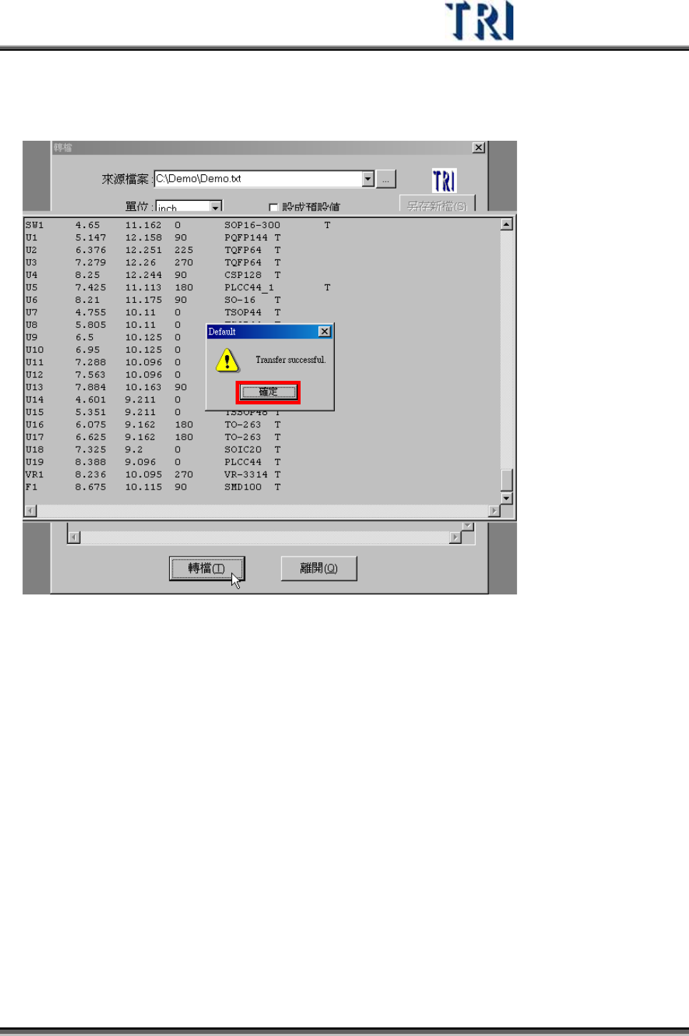 6) 轉檔完成後出現轉檔成功對話框,表示放置來源檔案的資料夾中已產生一 AOI 檔