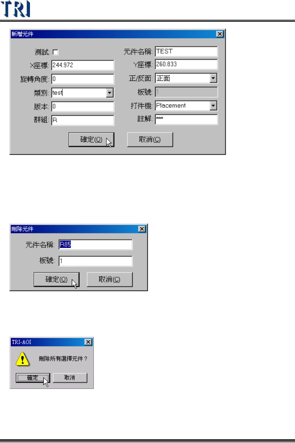 若選取刪除單個元件,則系統出現以下視窗,確認無誤後請按下[確定]刪除此元件。