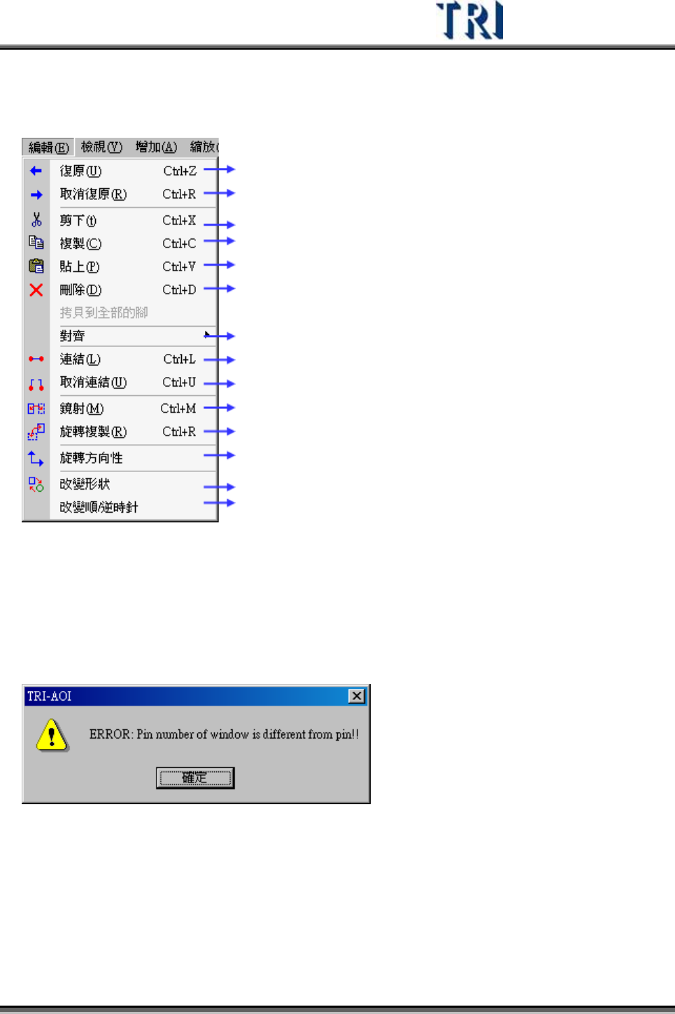 選擇的檢測框複製到其他腳位上。若選擇的檢測框與[Pin]框沒有連結,則會出現以下