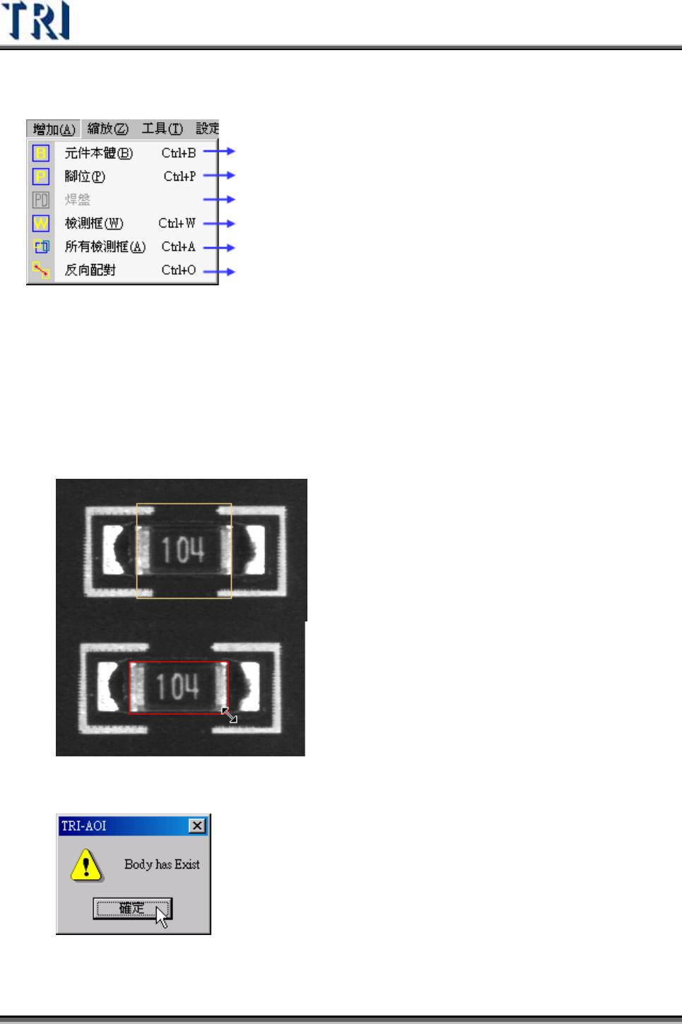 按此按鈕,系統會自動在影像區中央出現一黃色正方形框,即為本體框,元件本體