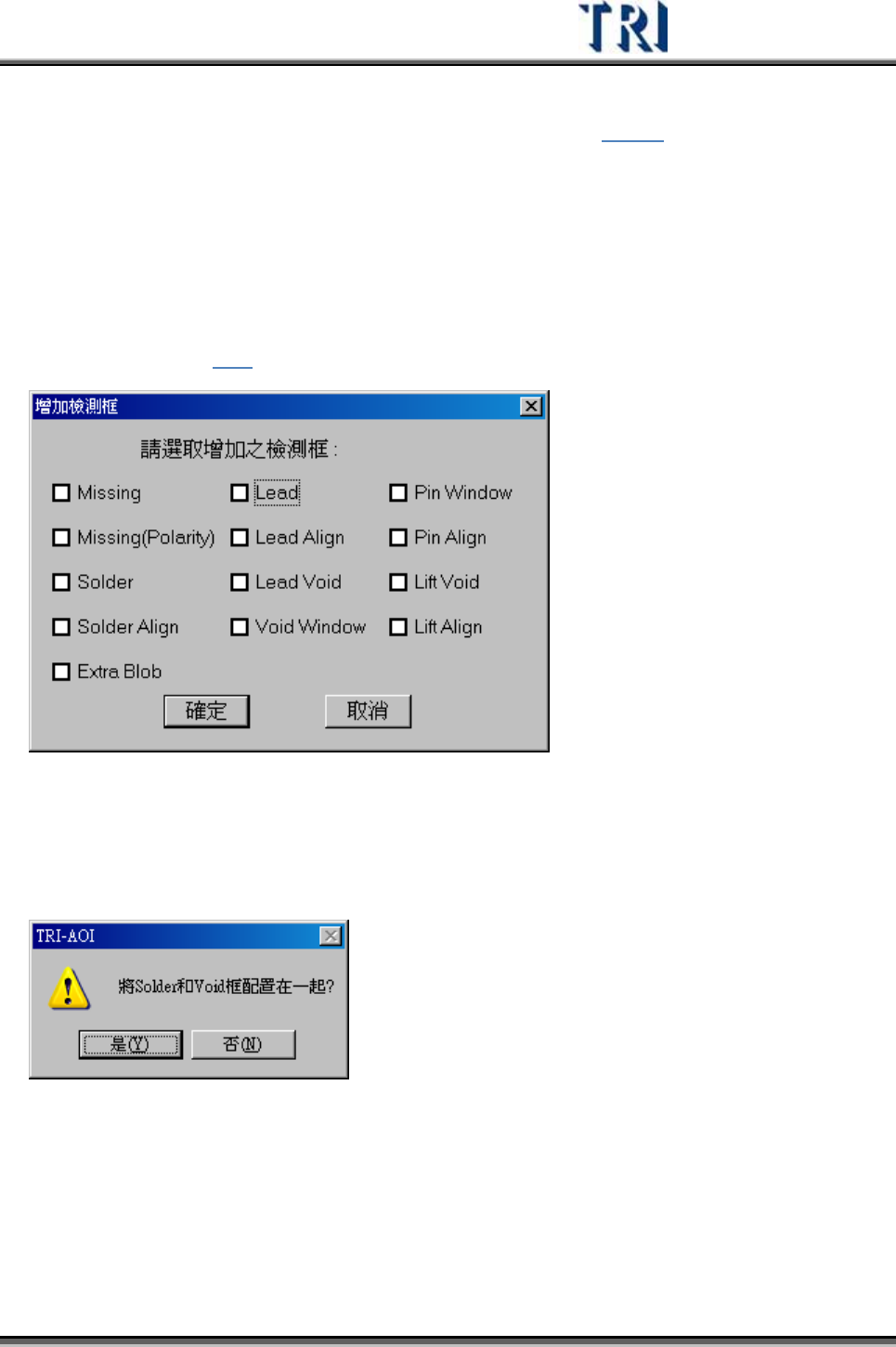 後,系統詢問是否要將[Solder]框及[Void]框配在相同的 FOV 中;若選擇[是],表示系