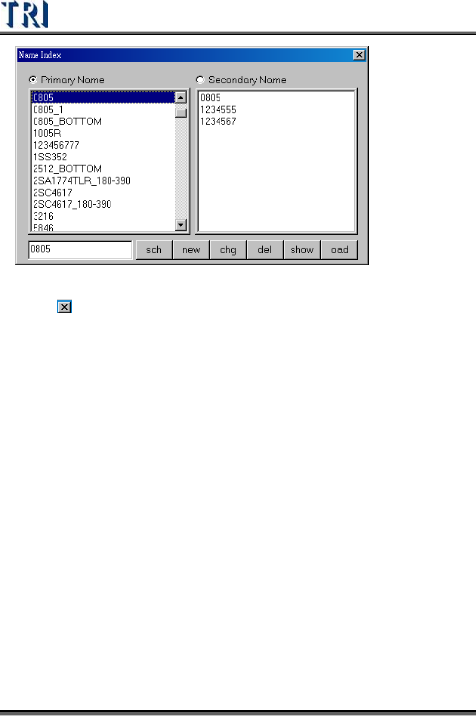 刪除 – 刪除所選擇的主名稱或是次名稱索引