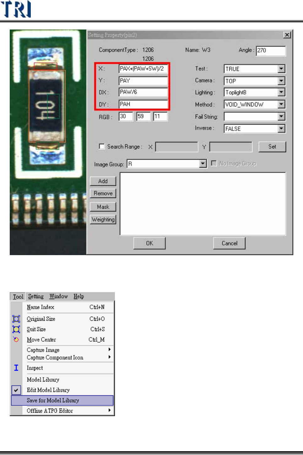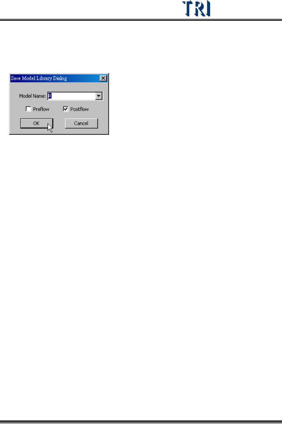 Test Research Inc. 312 TRI 7500 Series User Gu ide – Software Step4. 按下 [Tool/ Save for Model Library] 存檔。