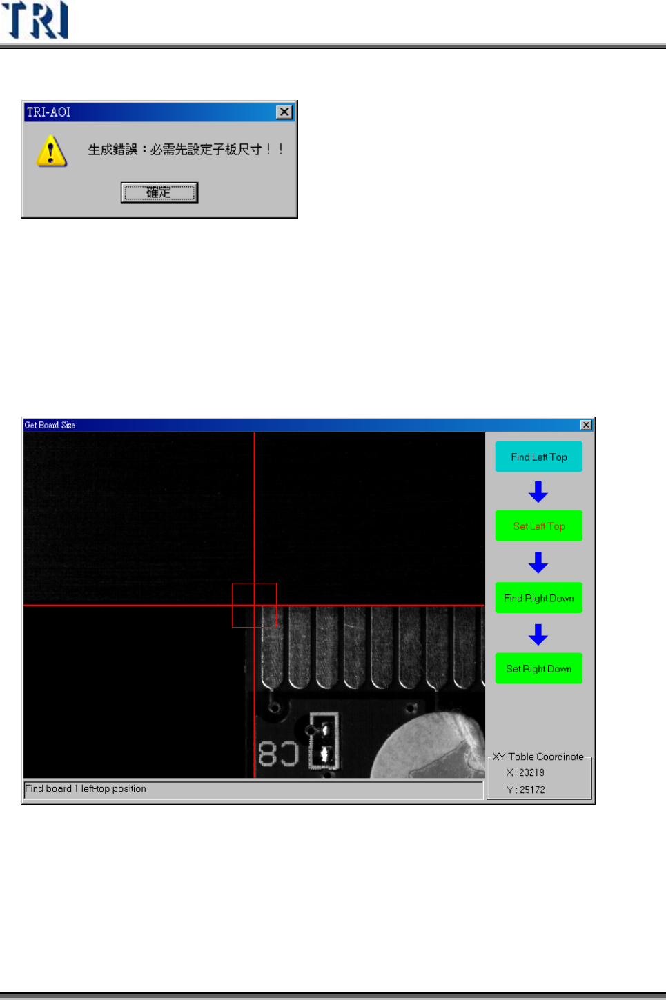 1) 將攝影機移動到 1號電路板的左上角位置後,按下[Set Left Top]按鈕,取得其座