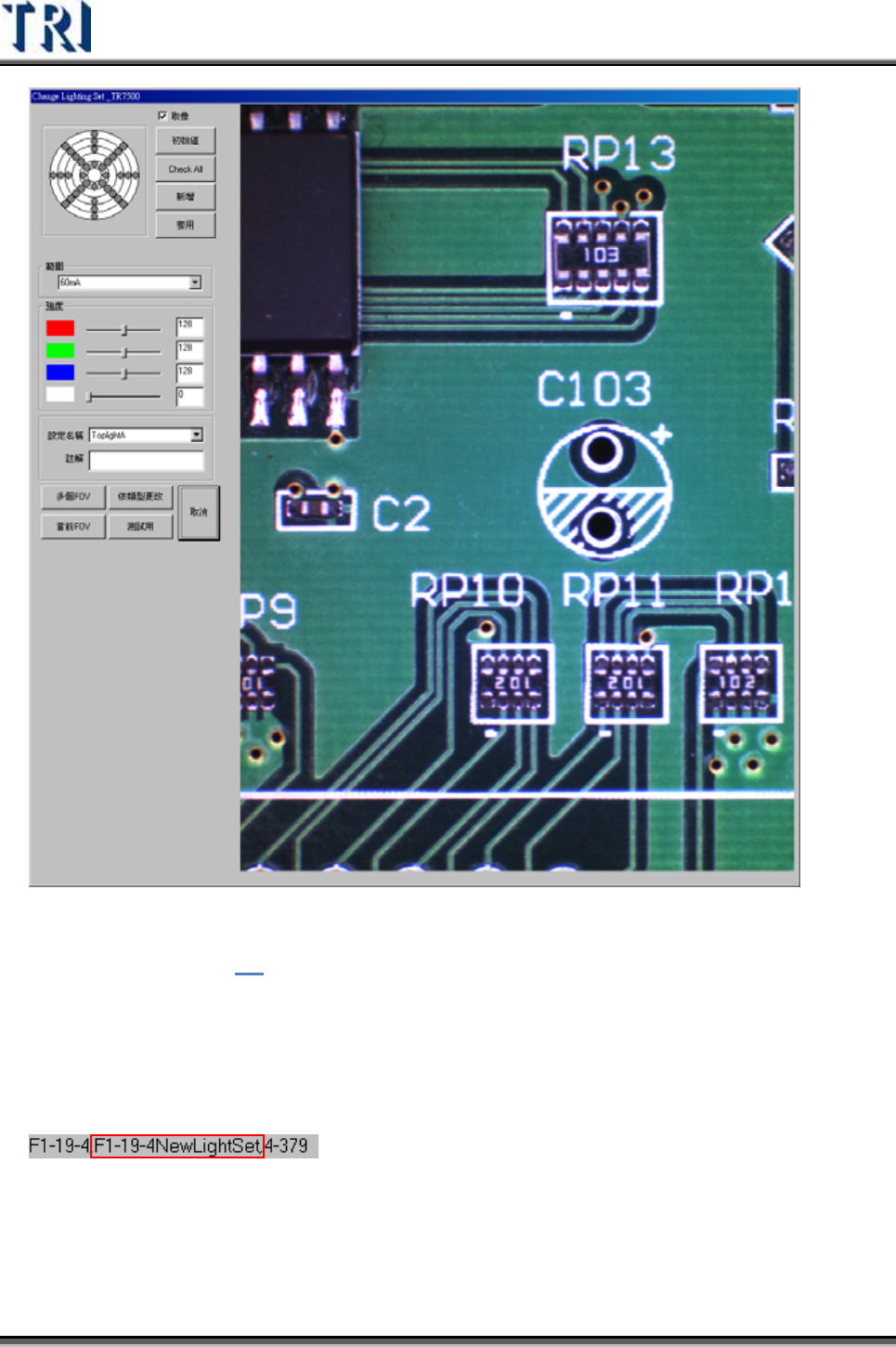 Test Research Inc. TRI 7500 Series User Gu ide – Software 443 是 否 5.6.11 教導 (T RAIN )/ 解除教導 (U NTRAIN )/ 檢測 (T EST )/ 不 檢測 (U NTEST ) 5.6.11.1 教導 (Train) 按下以教導所選擇的檢測框 所有的 FOV (For all FOV) – 勾選此選項表示教導所有的檢…