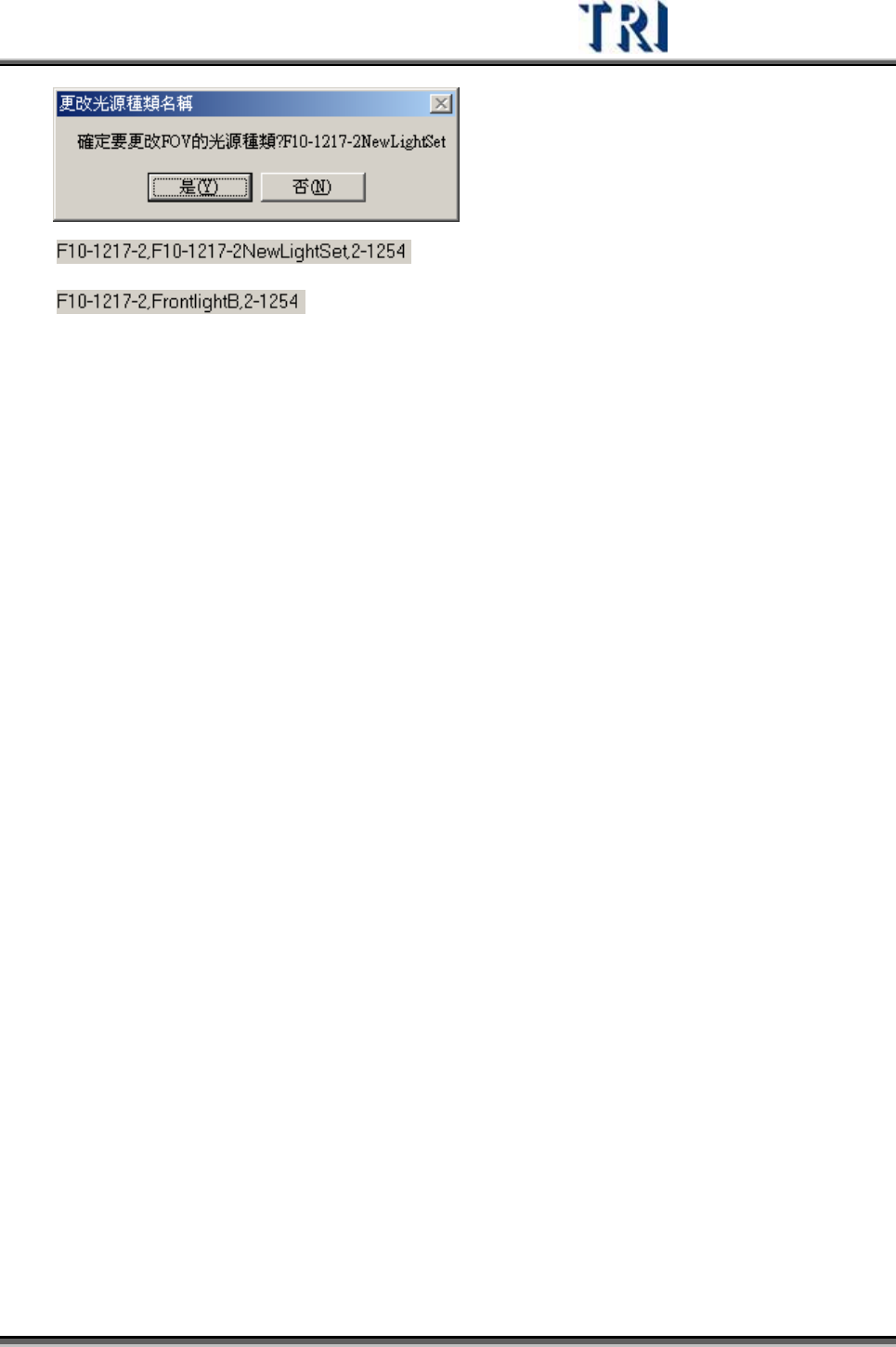 若燈光以其他燈光預設值修改,系統會詢問是否要以新光源命名。若選擇[是],表