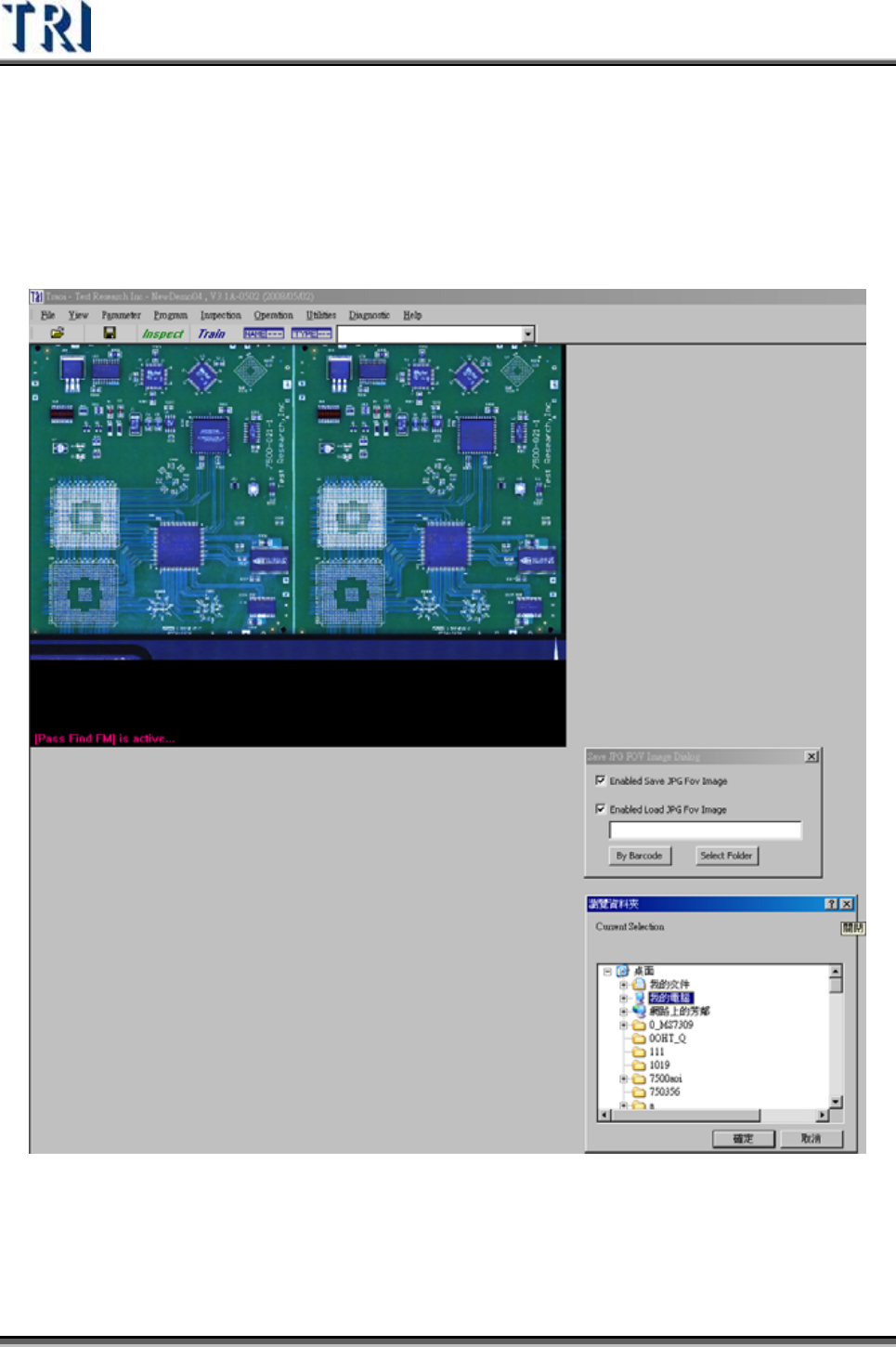 Test Research Inc. 464 TRI 7500 Series User Gu ide – Software 7.2 在檢測過程中儲存所有 FOV 影像 7.2.1 啓 動和設定 在主程式下按鍵盤上的 [F4] 鈕,可以開啟設定畫面。