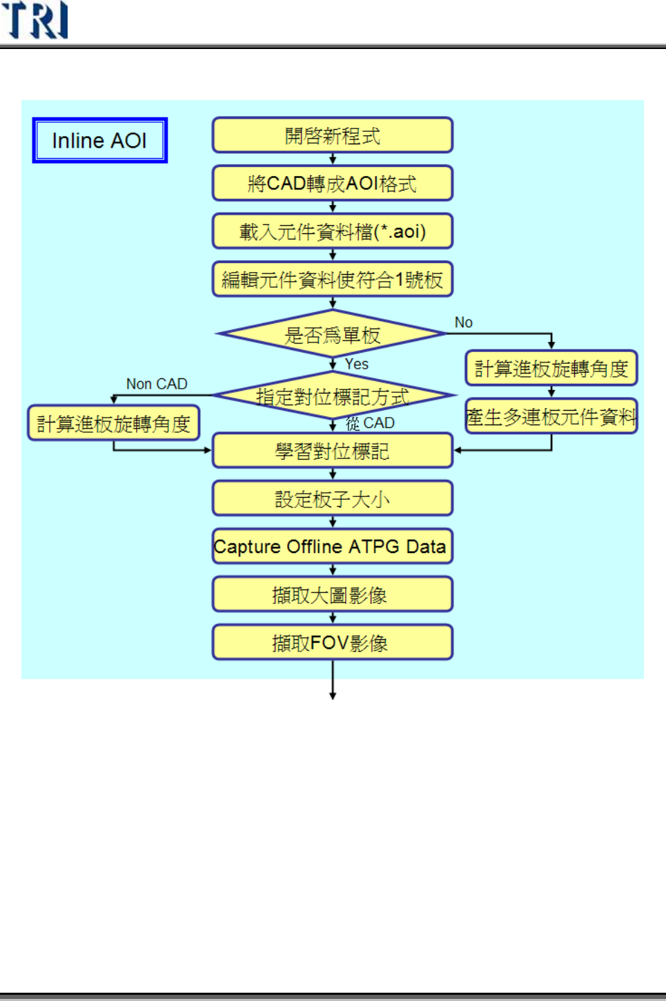 Test Research Inc. TRI 7500 Series User Gu ide – Software 475 3) 系統將會在與程式相同的資 料 夾中建 立 一個名為 [OfflineImage] 的資 料 夾,並將所 抓取的影像依形式及元件名稱存放。 4) 將程式存檔 (*.pre) 。 5) 將程式所在位置的整個資 料 夾複製到遠端編輯站電腦上。 若 需要對於已經有資 料 庫的元件繼續進 行…