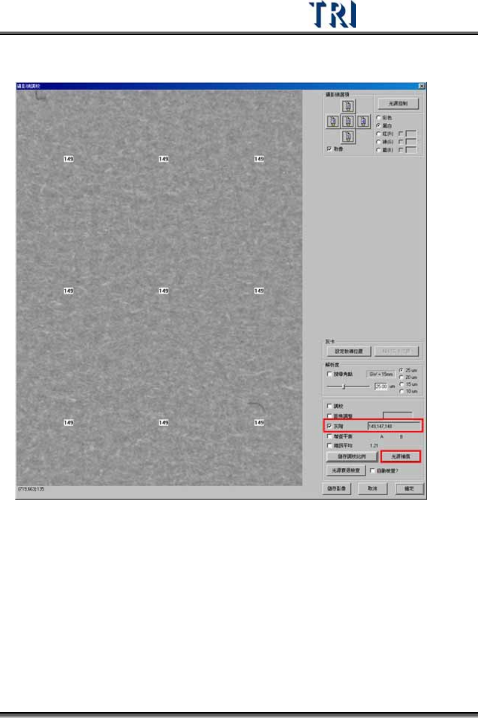 Step6. 勾選[灰階(Gray Level)]選項,系統即會顯示出目前影像的灰階值。燈光需設