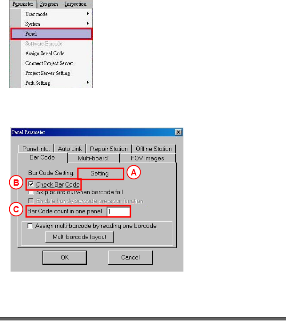 1) 啟動硬體條碼設定 ( Parameter ÆPanel )