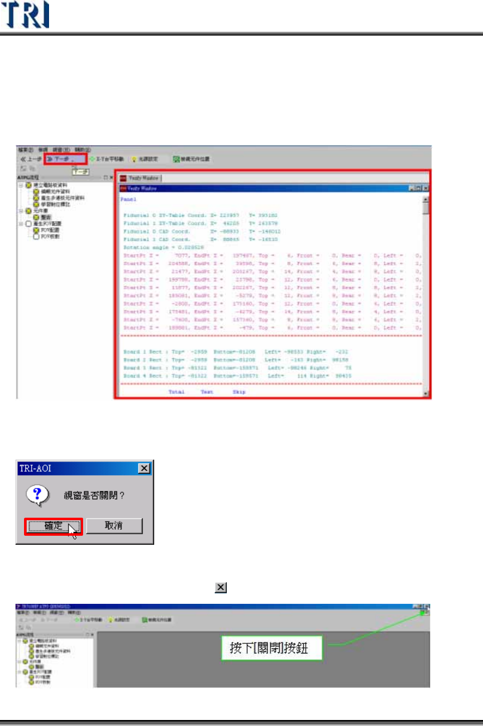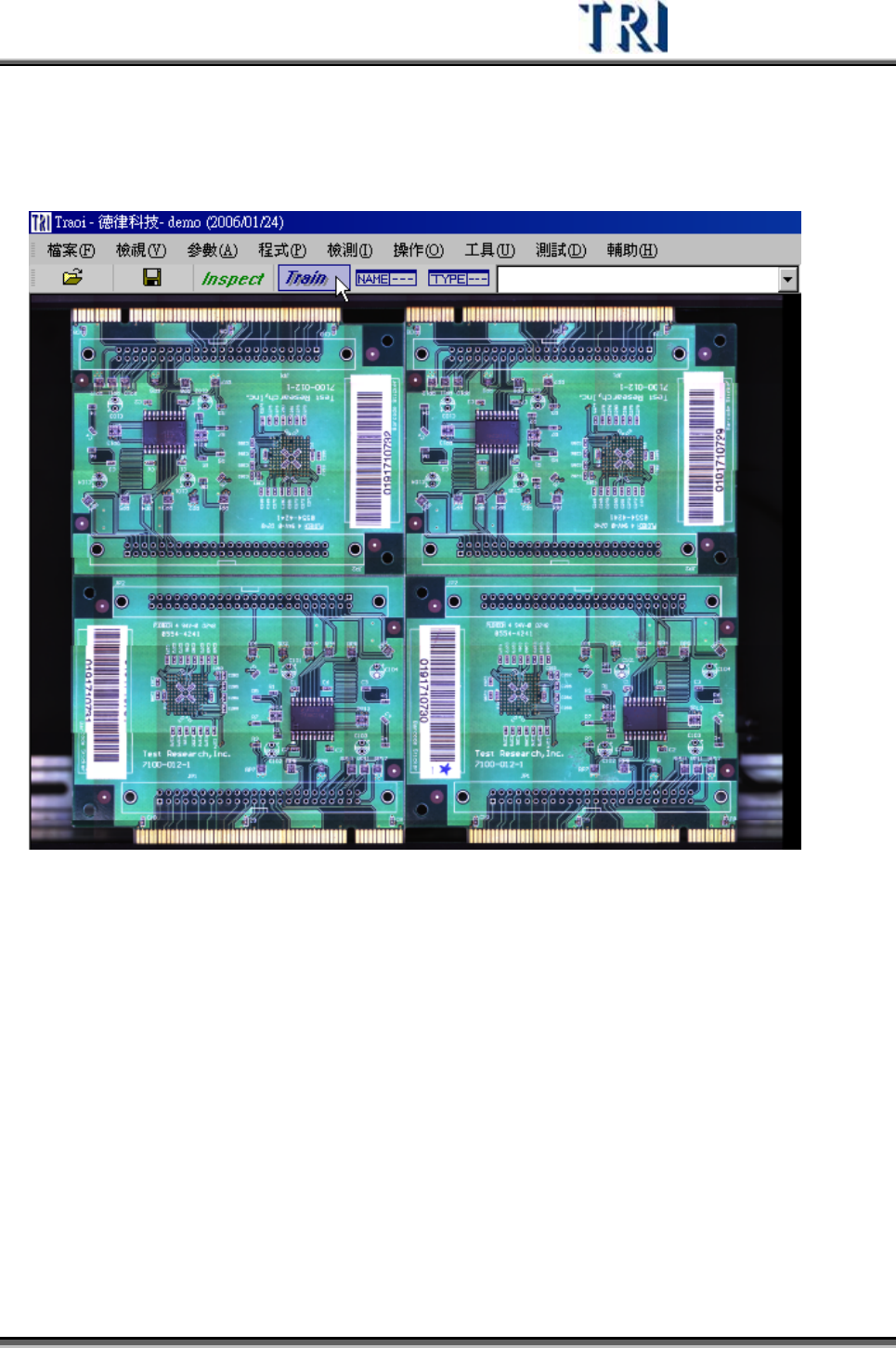 Test Research Inc. TRI 7500 Series User Gu ide – Software 47 2.10 學習 (Train) 1) 按下 [Train] 按鈕進入學習視窗。