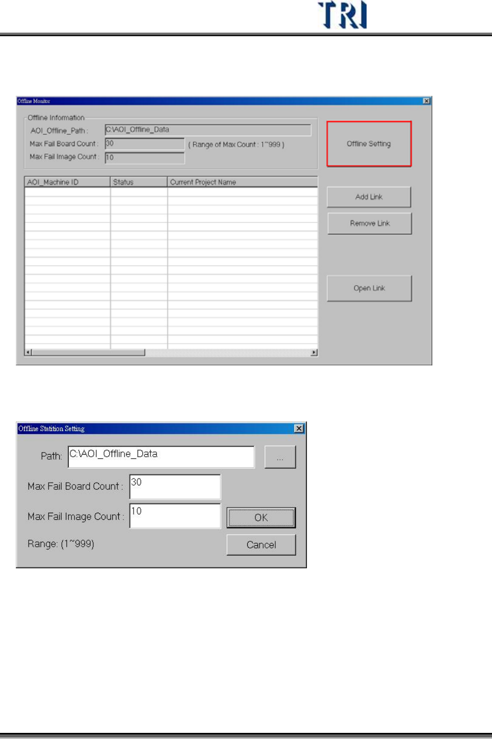 2) 使用者可以改變 Offline Path, Max Fail Board Count, Max Fail Image Count
