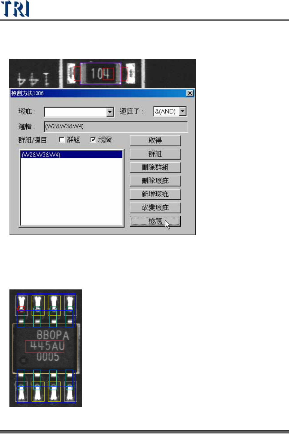 檢視(View) – 按下[檢視]按鈕可以把[邏輯]完字方塊中有關的檢測框在圖上用紅色顯