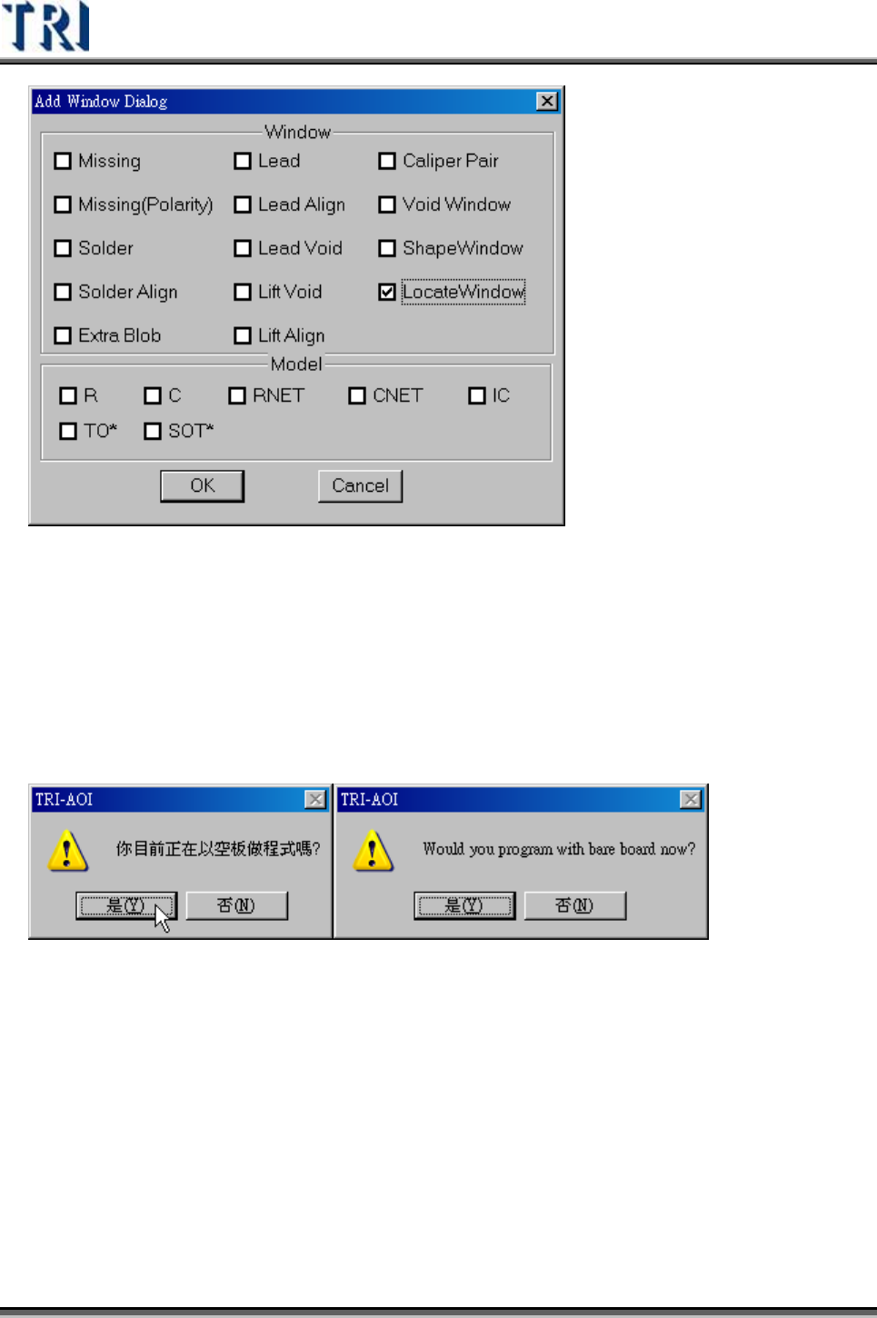 Test Research Inc. TRI 7500 Series User Gu ide – Software 387 Step8. 開啟 [Train] 步驟,對 FOV 影像增加 [Warp] 框。 Step9. 等到取得實版後,再依正常步驟繼續編輯程式。