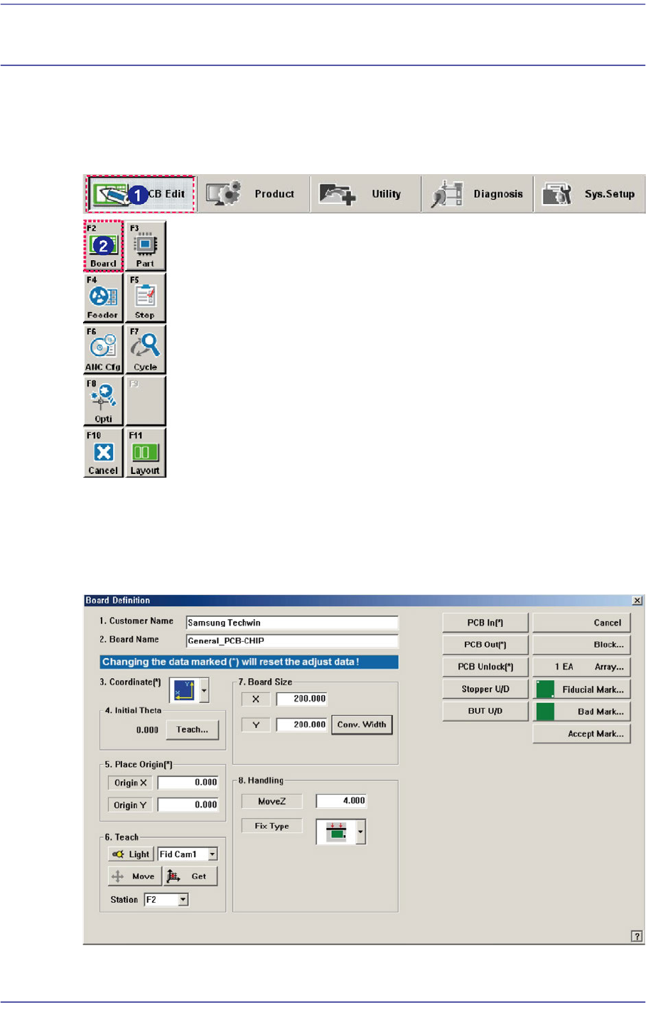 6-1 Board Definition Chapter6. Board Definition Used t he ‘Board’ submenu t o edit d a ta for t he p lacement of components on a PCB ( Printed Circuit Board). Figure6.1 Se q uence of executing board menu 6.1. Basic Setup…