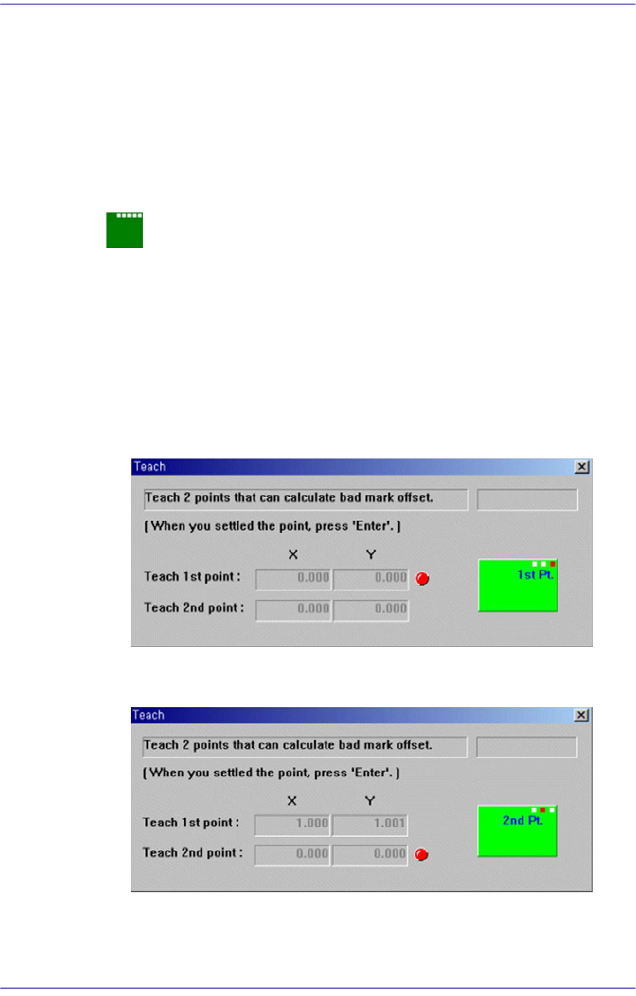 Teach the offset value of bad mark. When this Button is clicked on, the following