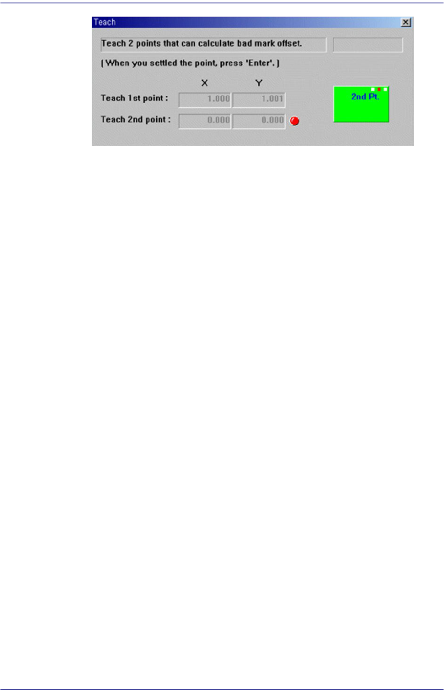 Press the “Enter” key to complete the bad mark offset value teaching operation.