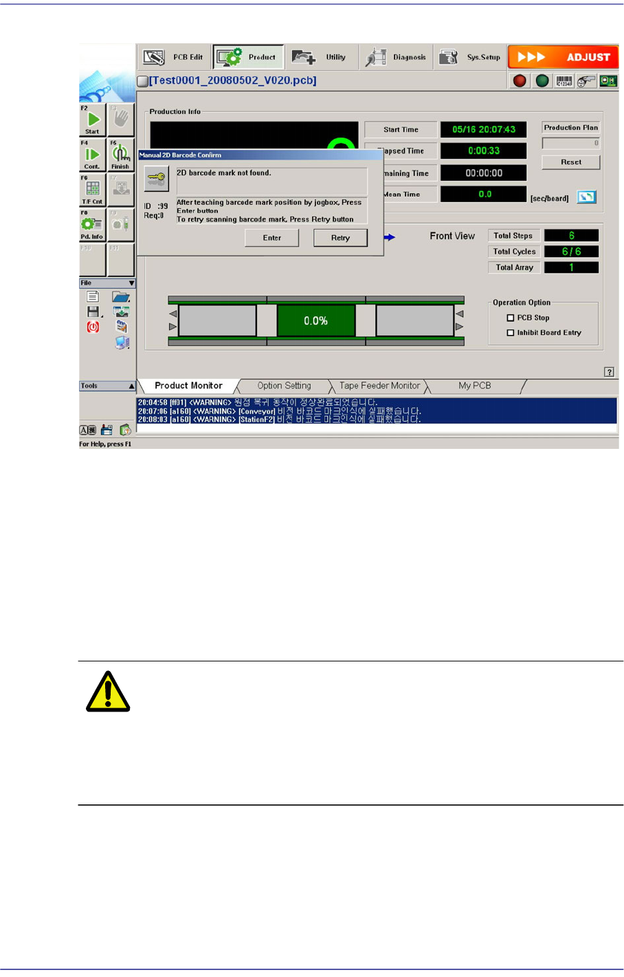 Execute the ‘Barcode Position’ dialog box to re-teach the barcode position and
