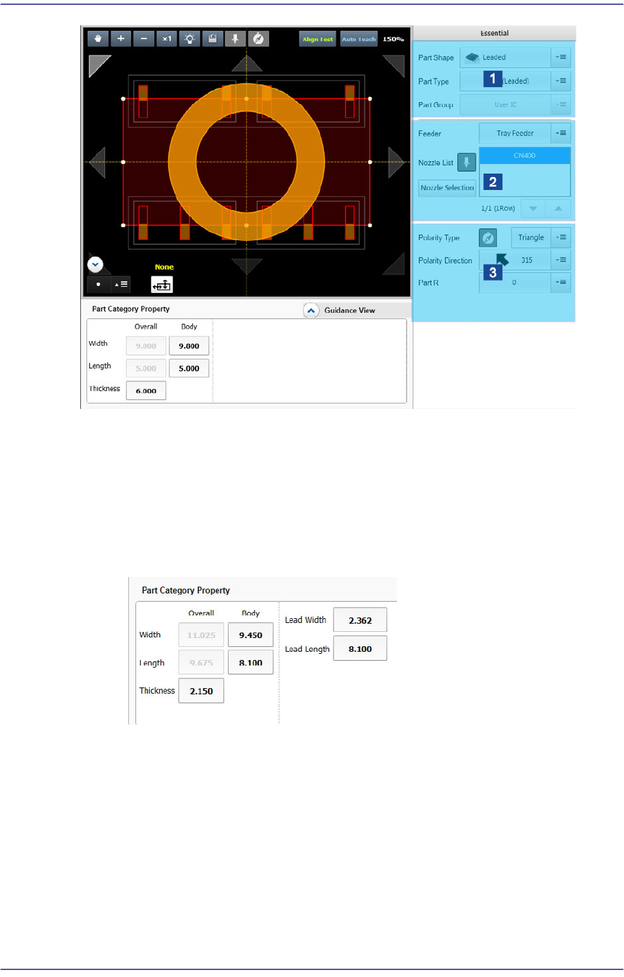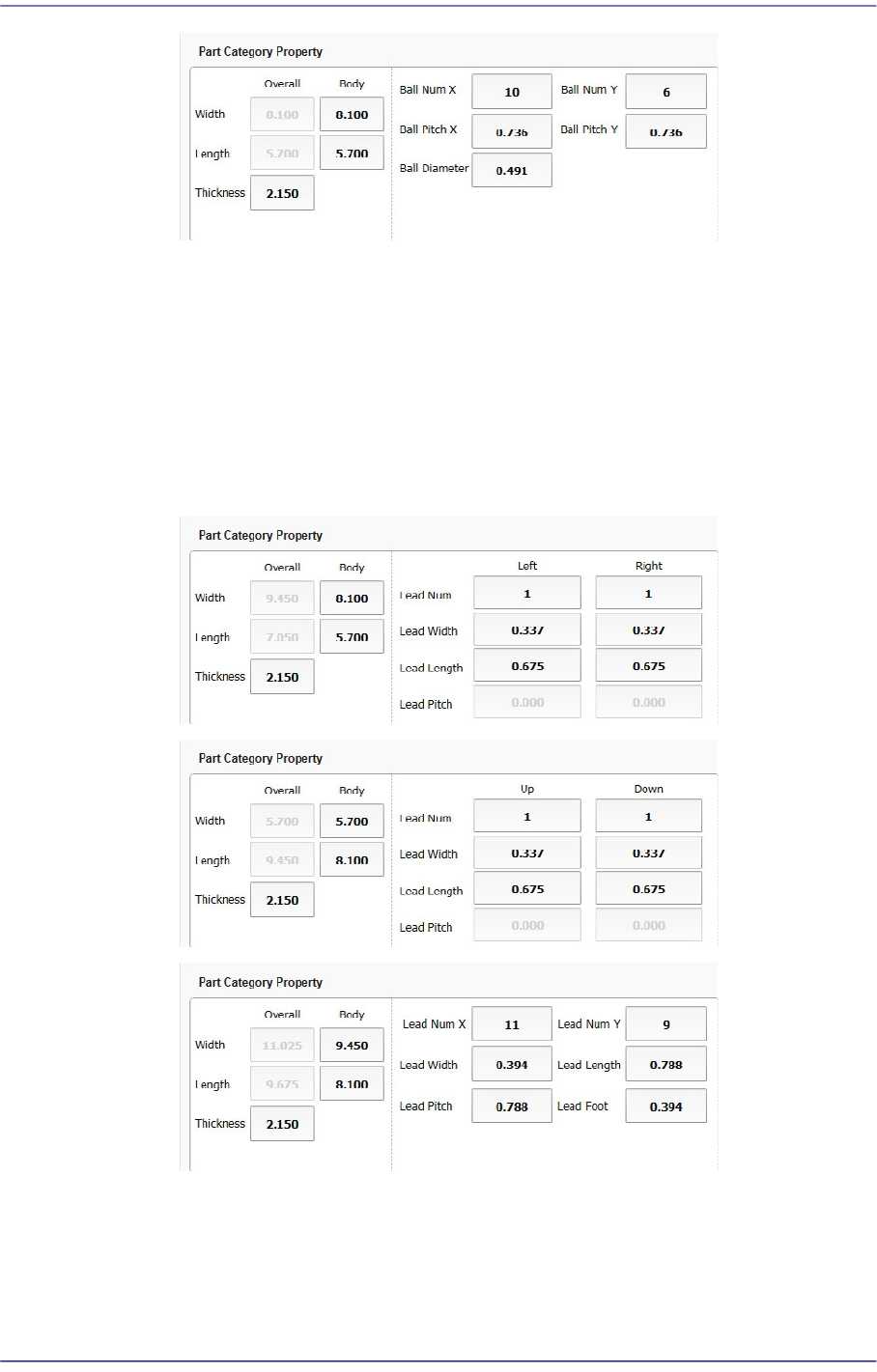 7-16 Fast Flexible Placer SM481(L) PLUS Administ r ator’s Guide <Bo dy W idt h/Length>: Part s ize in the X/Y direction <Thickness>: Part thickness <Number of X/Y Balls>: Numb e r of balls in the …