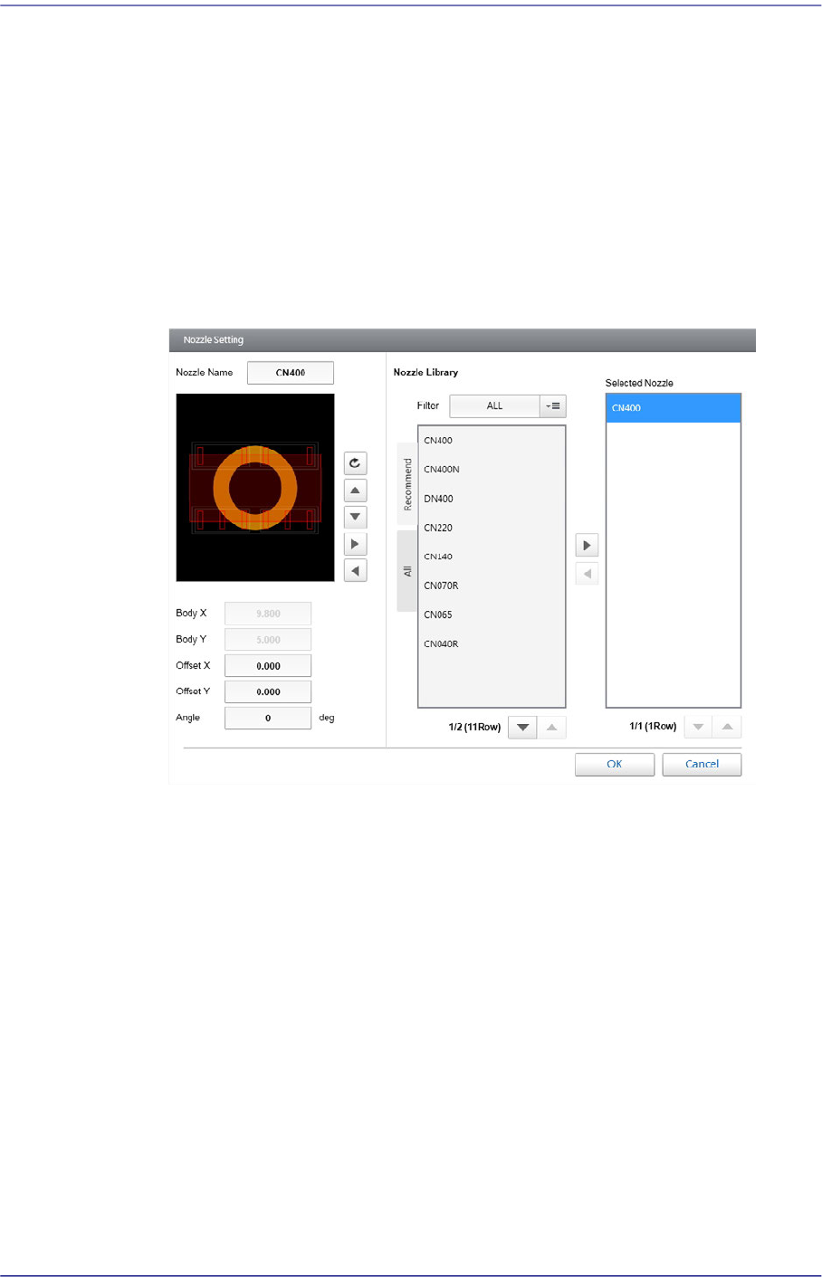 the <Selected Nozzle> list box.
