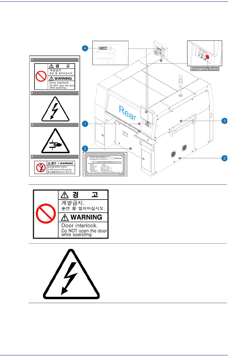 Figurei.1 Safety labels attached on the front part of the machine