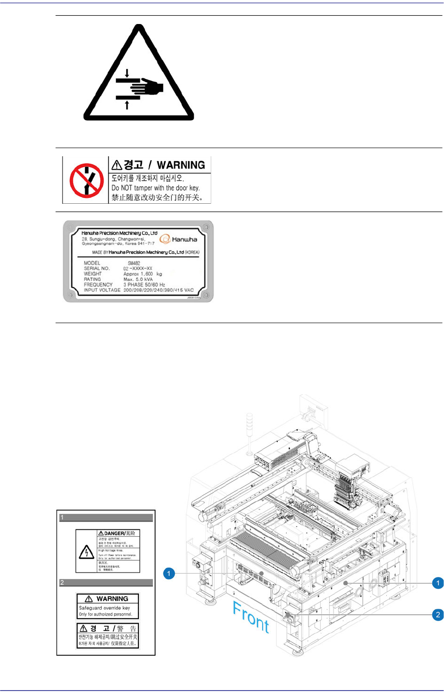 Figurei.3 Safety labels attached to the inside of the machine at the front