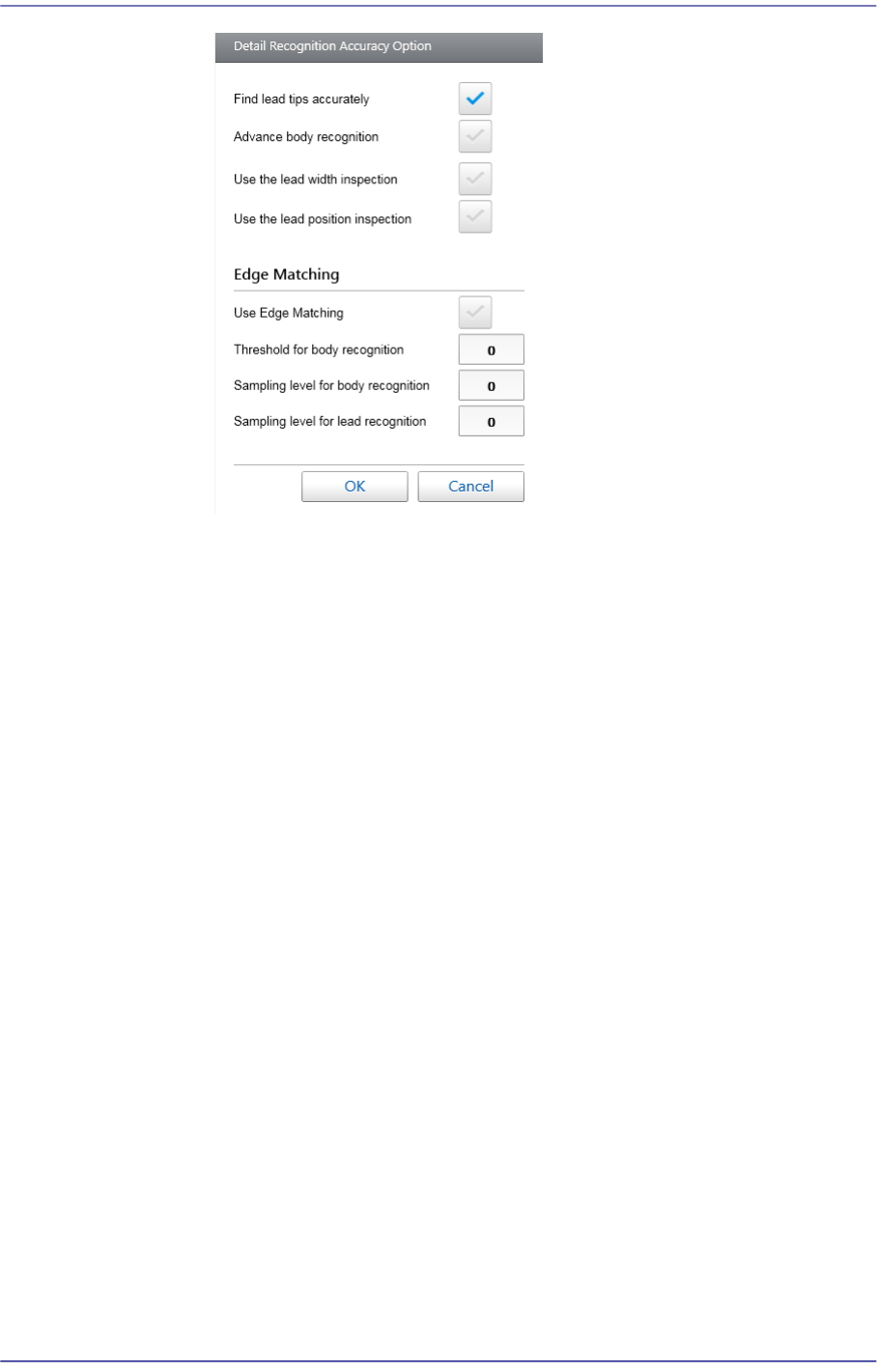 7-55 Part Registration Use the default value. <Sampling level for lead recog nition> edit box Enabled when the <Use Edge Matching> check button is selected. Whe n recognizing the lead, set the samp l ing ac…