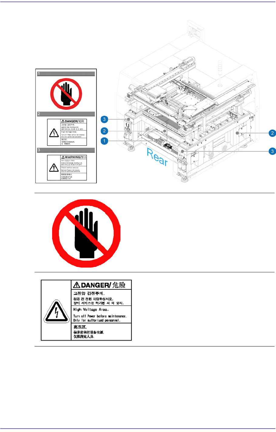 Figurei.4 Safety labels attached on the inside of the machine at the rear