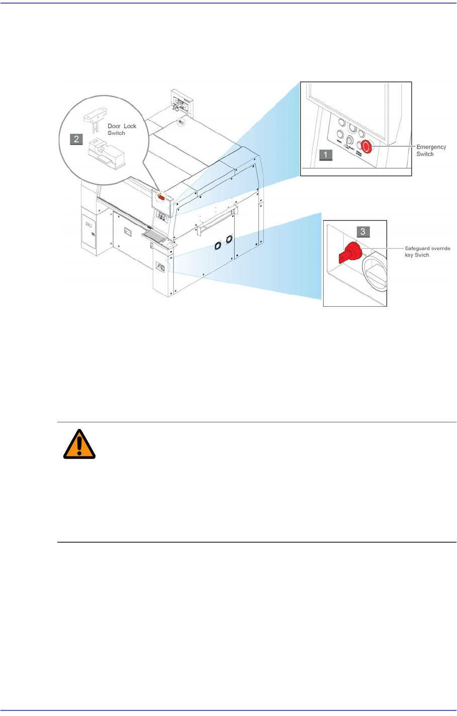 This section describes the operation of safety interlocks manipulated to stop the machine