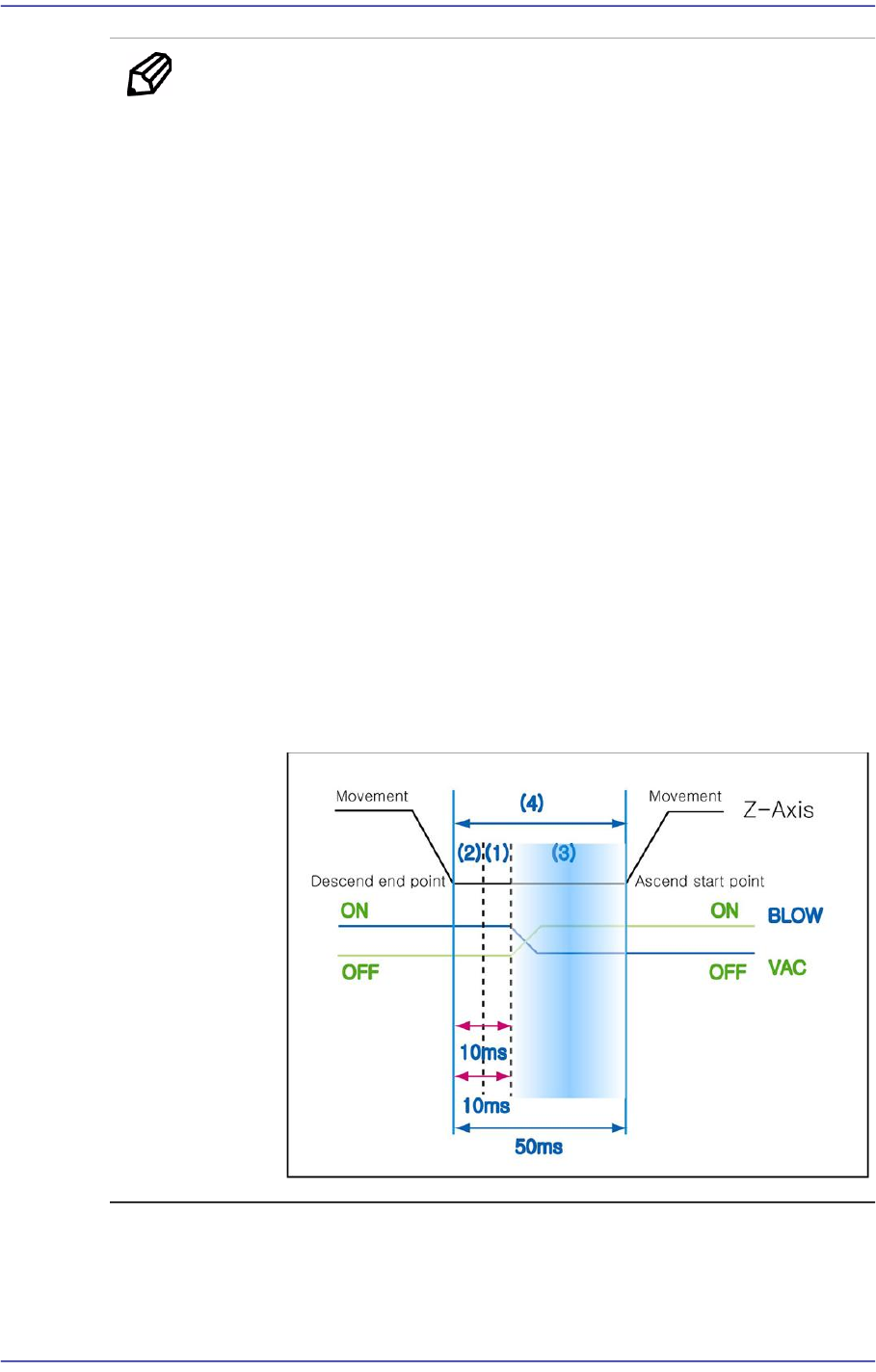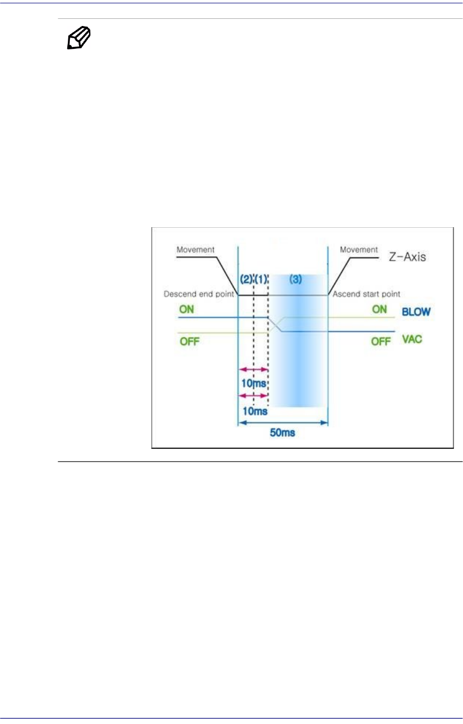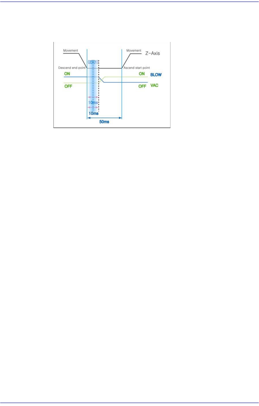 The ‘Blow ON’ 10 refers to the delay time from the time the Z axis finishes