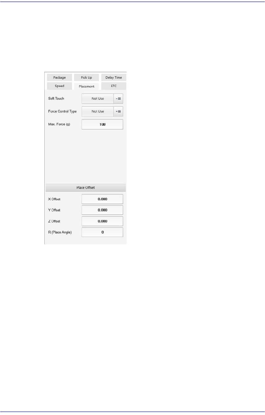 Sets the parameters related to part placement.