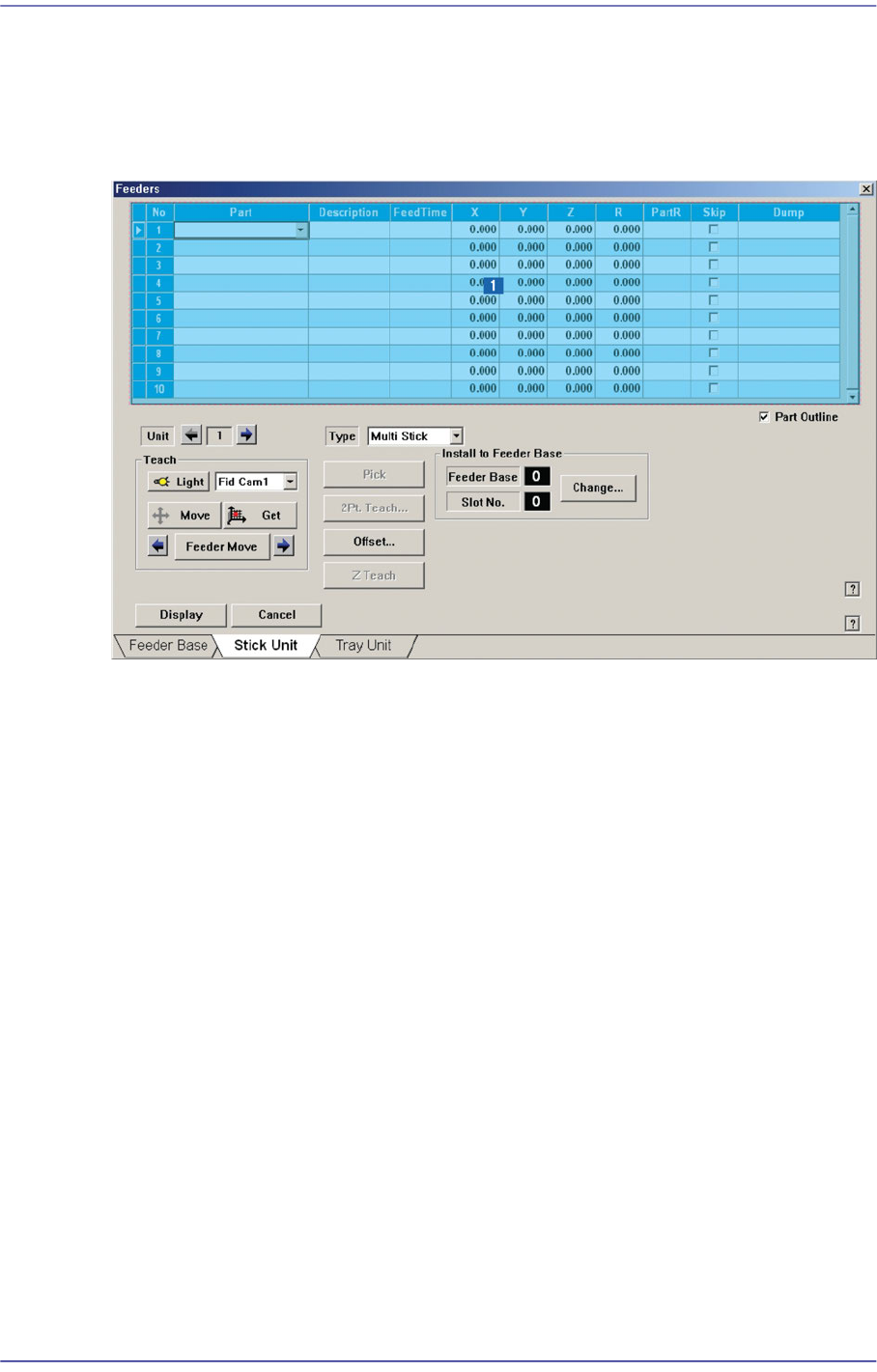 Install stick feeder and set data on the stick feeder. When “Stick Unit” is selected, the