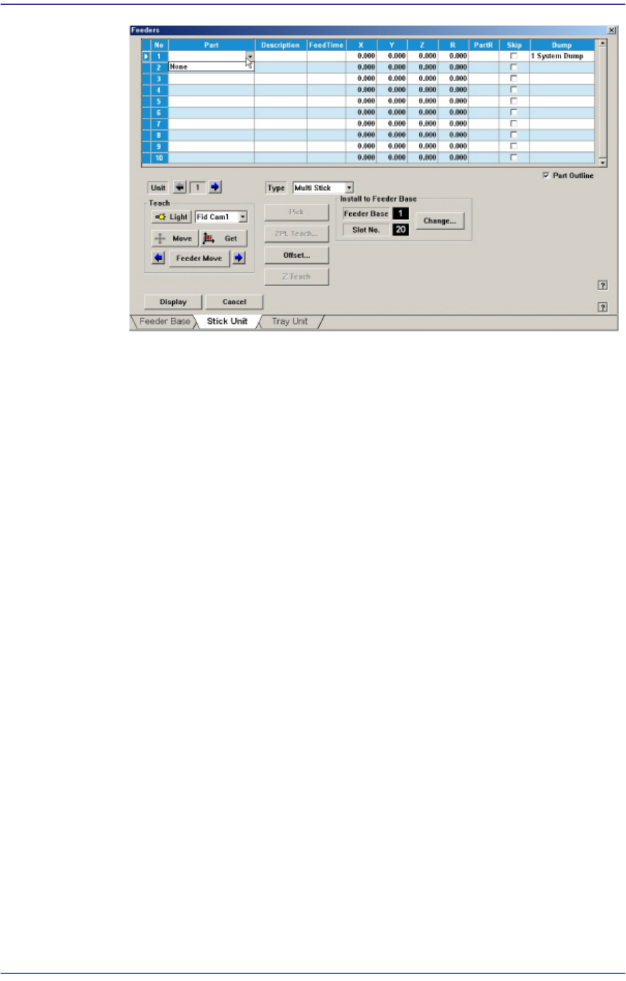 8-17 Feeder Setup <Feed Time> c olumn When a stick feeder is installed in the corresponding slot, set the component supply time of the st ick feeder . Basically st ick f eeders are vi bra tion type, t he refore c…
