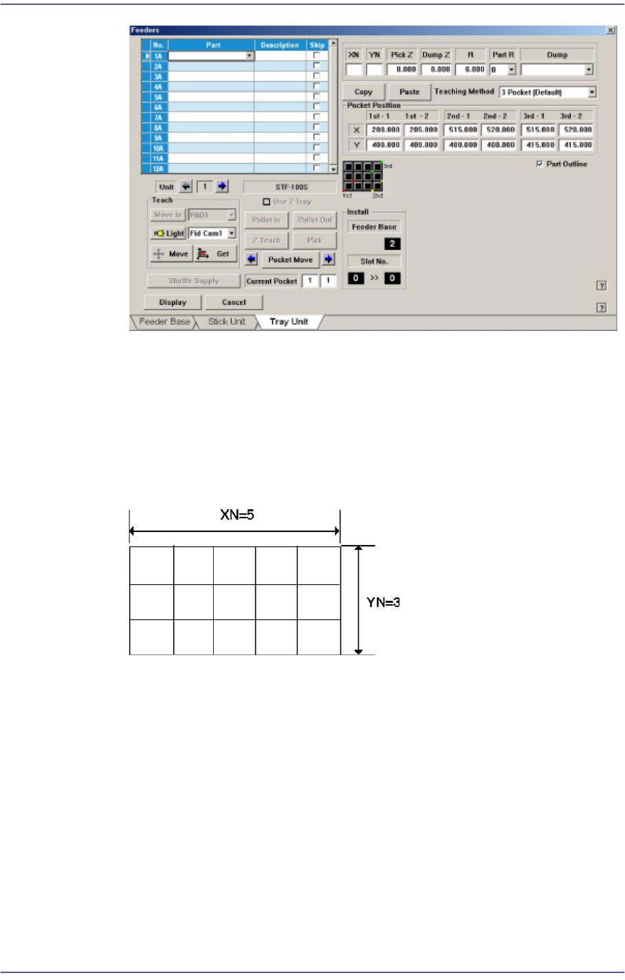 the tray feeder. If the 3Pocket or 2Pocket Diagonal method is selected, the function