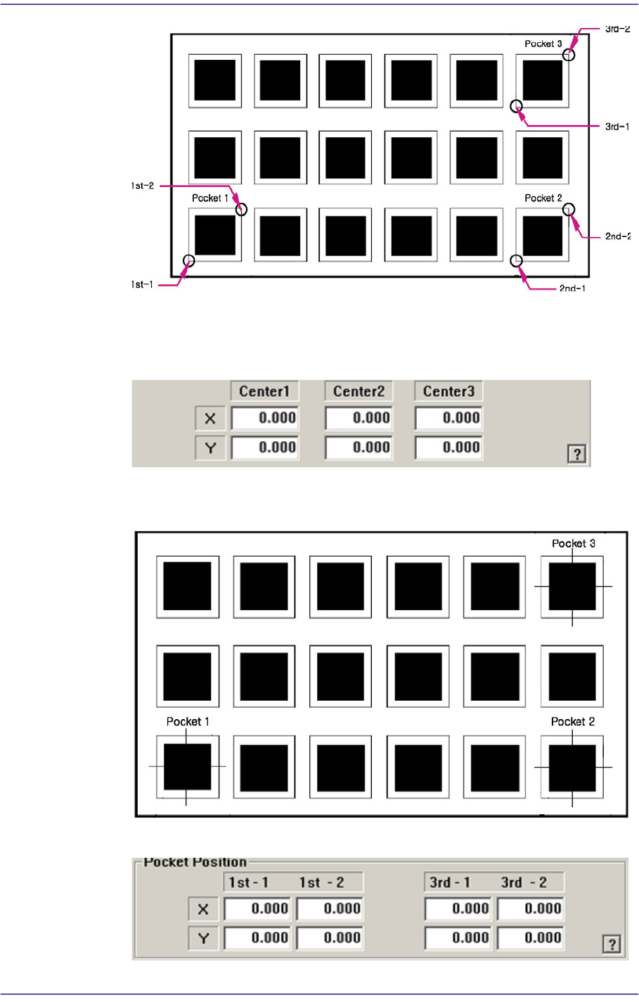 8-28 Fast Flexible Placer SM481(L) PLUS Administ r ator’s Guide As per the f ollowing figure, input two c orner points of pocket No’s. 1, 2 and 3 that face each other diagonally . <2Pocket X -Axis> Enter coordina…