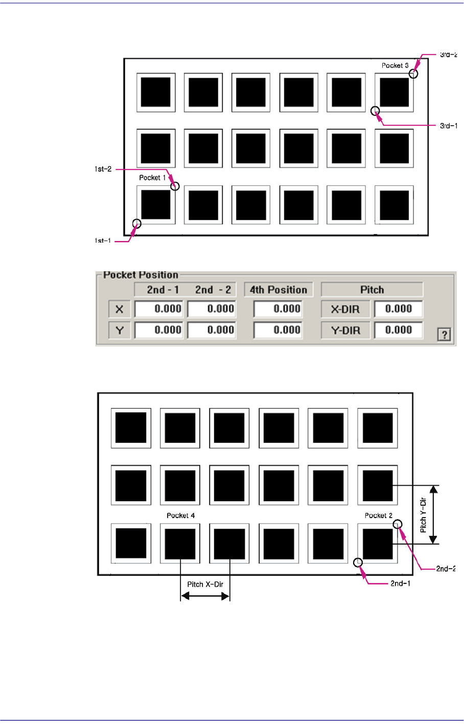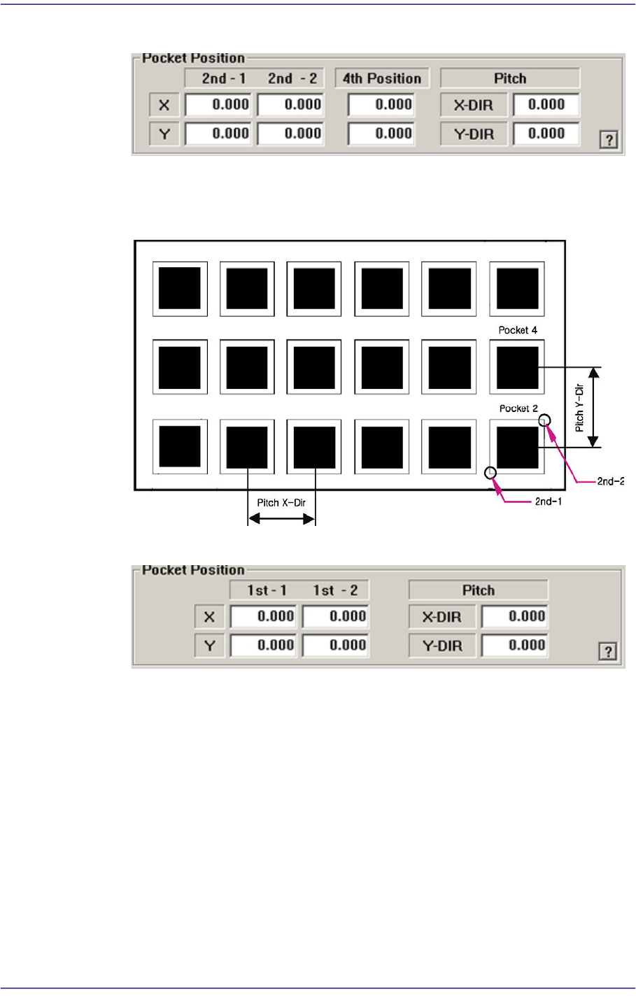 position of the second pocket and the pocket pitch in the X and Y directions.