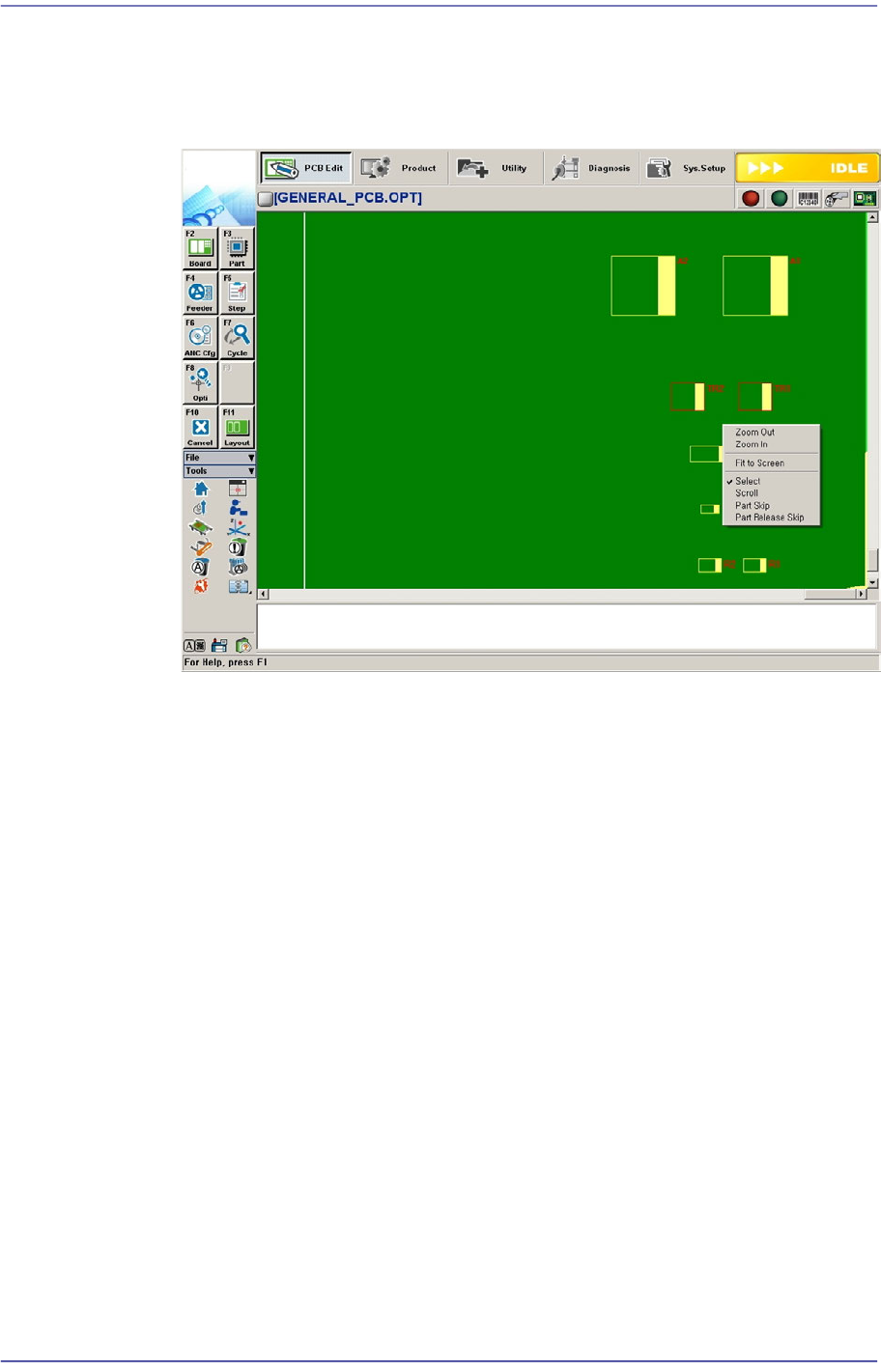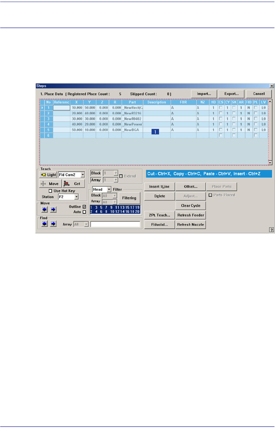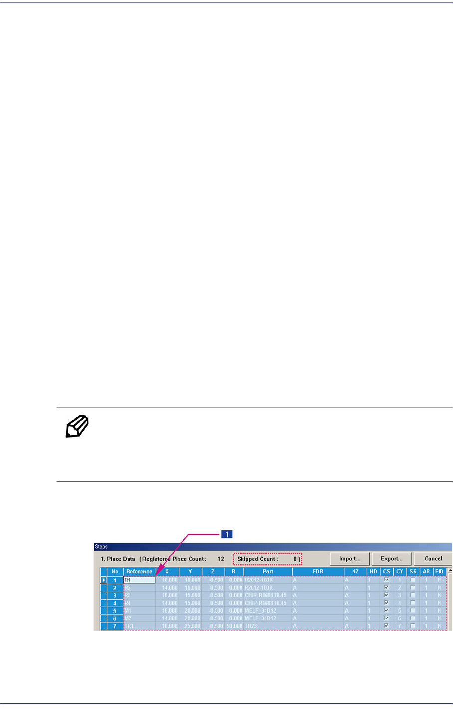 The ‘Step’ submenu edits data on PCB placement points, component fiducial marks,
