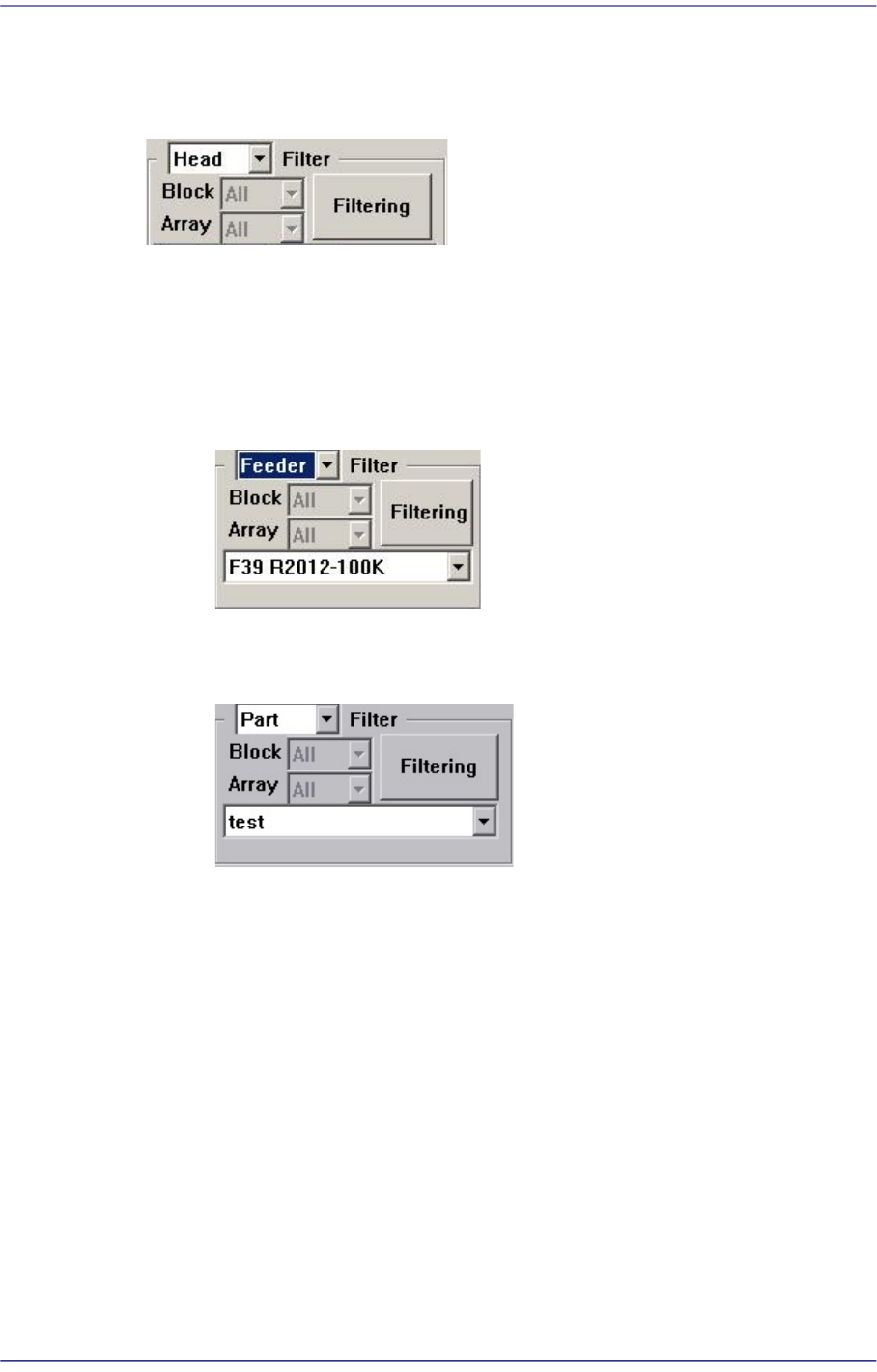 9-6 Fast Flexible Placer SM481(L) PLUS Administ r ator’s Guide <Filter> Group Designates the conditions for indicating the placement point shown in the Step dialog box. Clic king the button will display the filte…