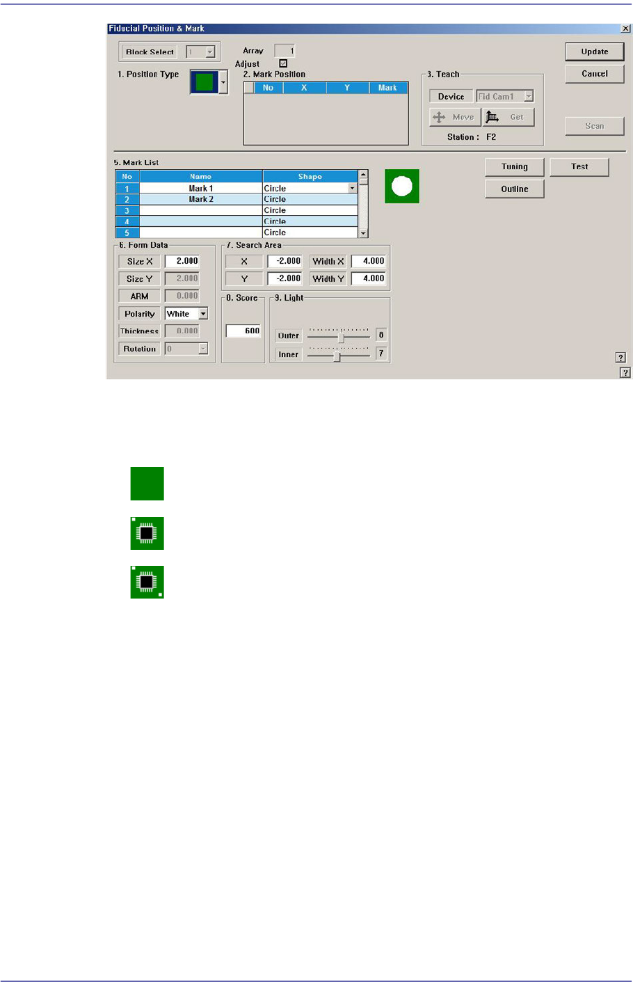 Please refer to “6.3. Fiducial Mark Setup” for more information.