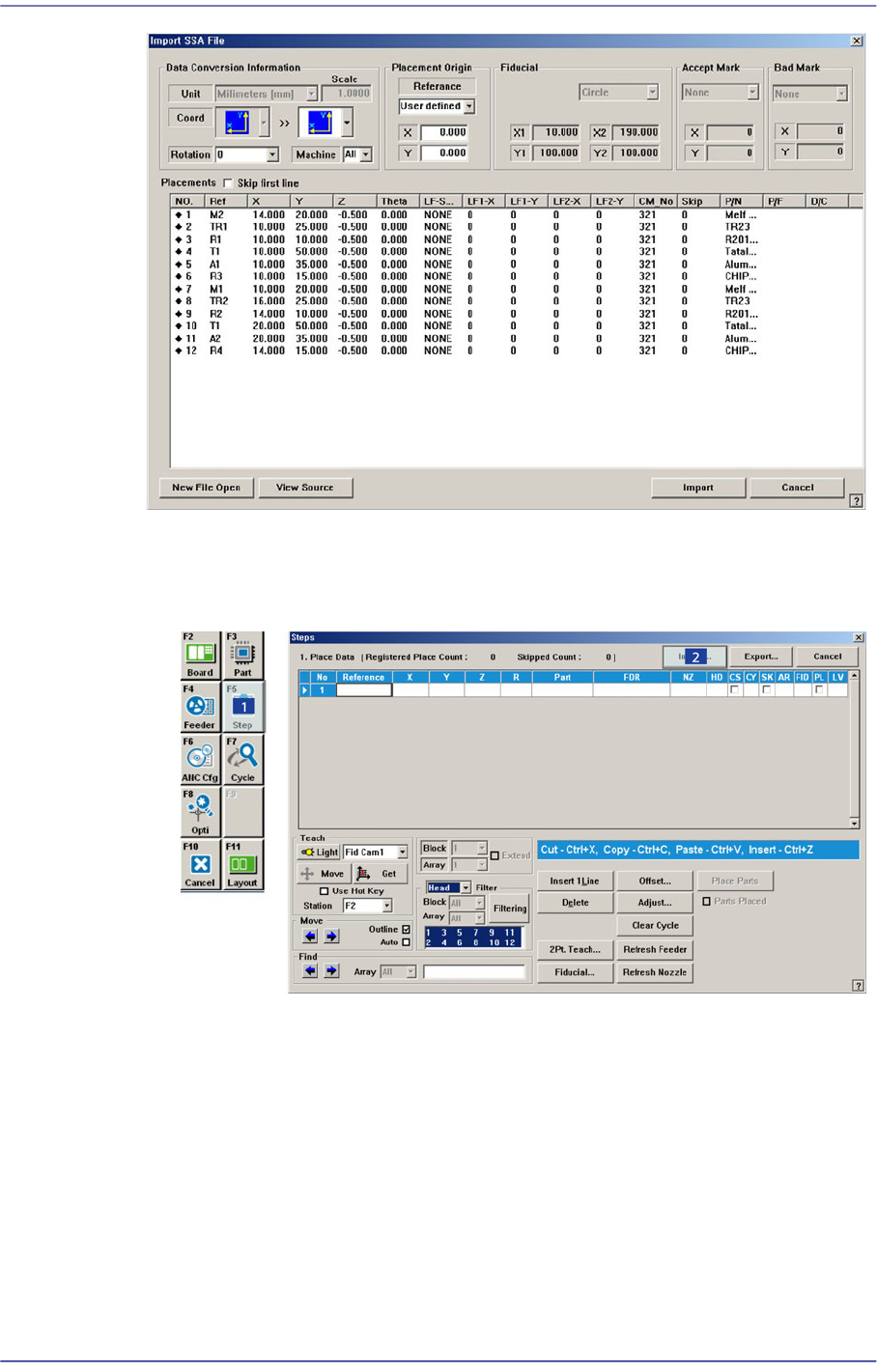 Click the <Import> button in the <Steps> dialog box.